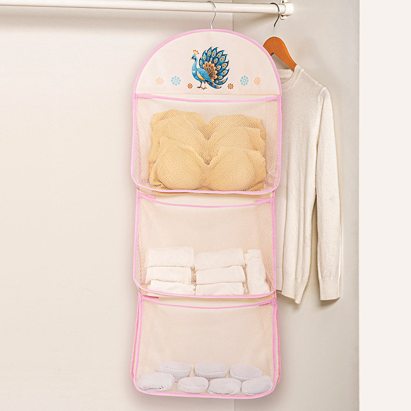 Peacock-patterned sock storage hanging bag, dormitory wardrobe, underwear and underpants net bag, double-layer large capacity, classified hanging type