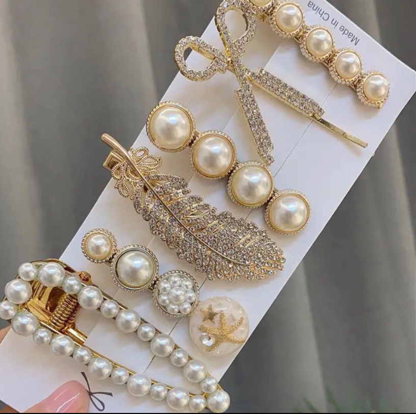 Pearl hairpin set, Korean bangs hairpin headwear, sweet and cute, simple side hairpin