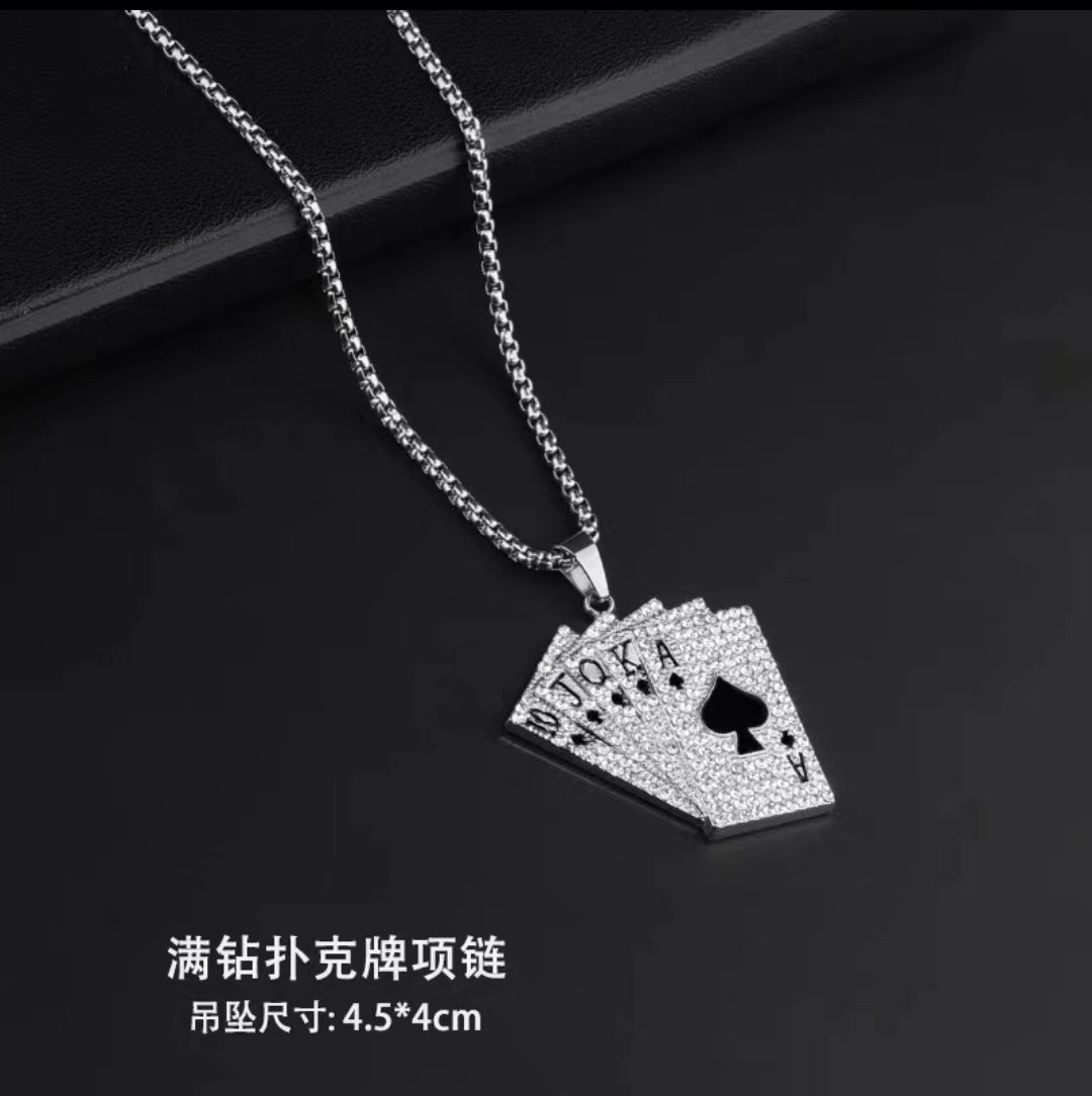 Personalized and trendy poker card necklace, the same style as the popular black Ace pendant on Instagram in Europe and America, long sweater chain accessories for men and women