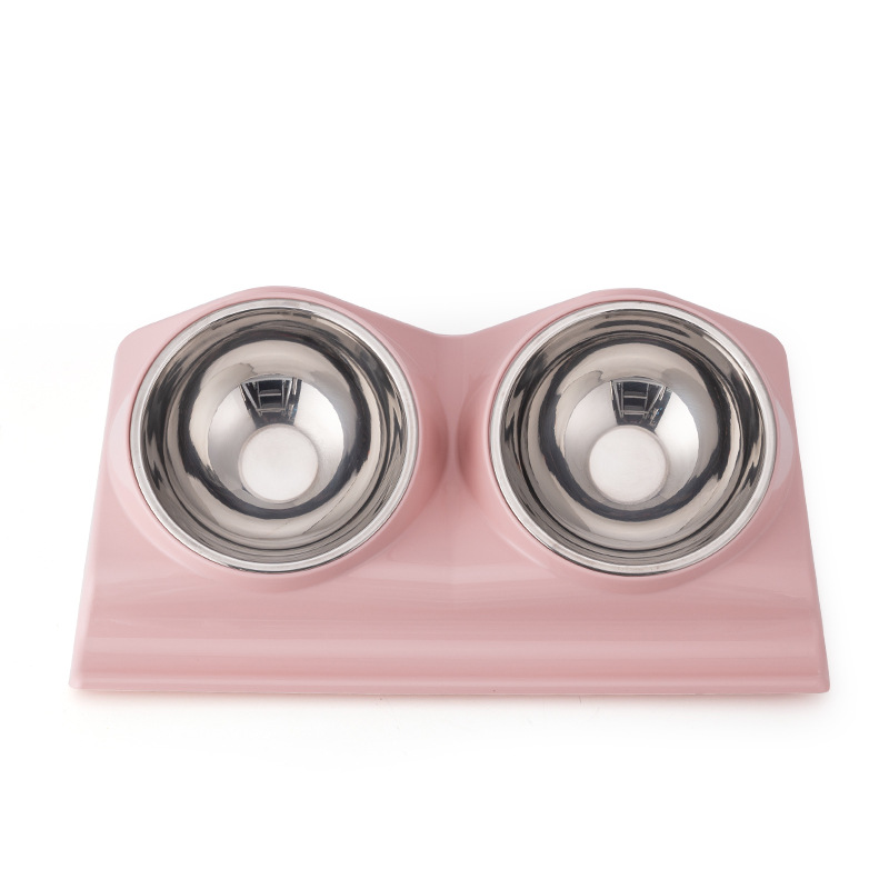 Pet bowl: 15-degree double bowl, light-colored stainless steel double bowl, pet food utensils, cat bowl, dog bowl