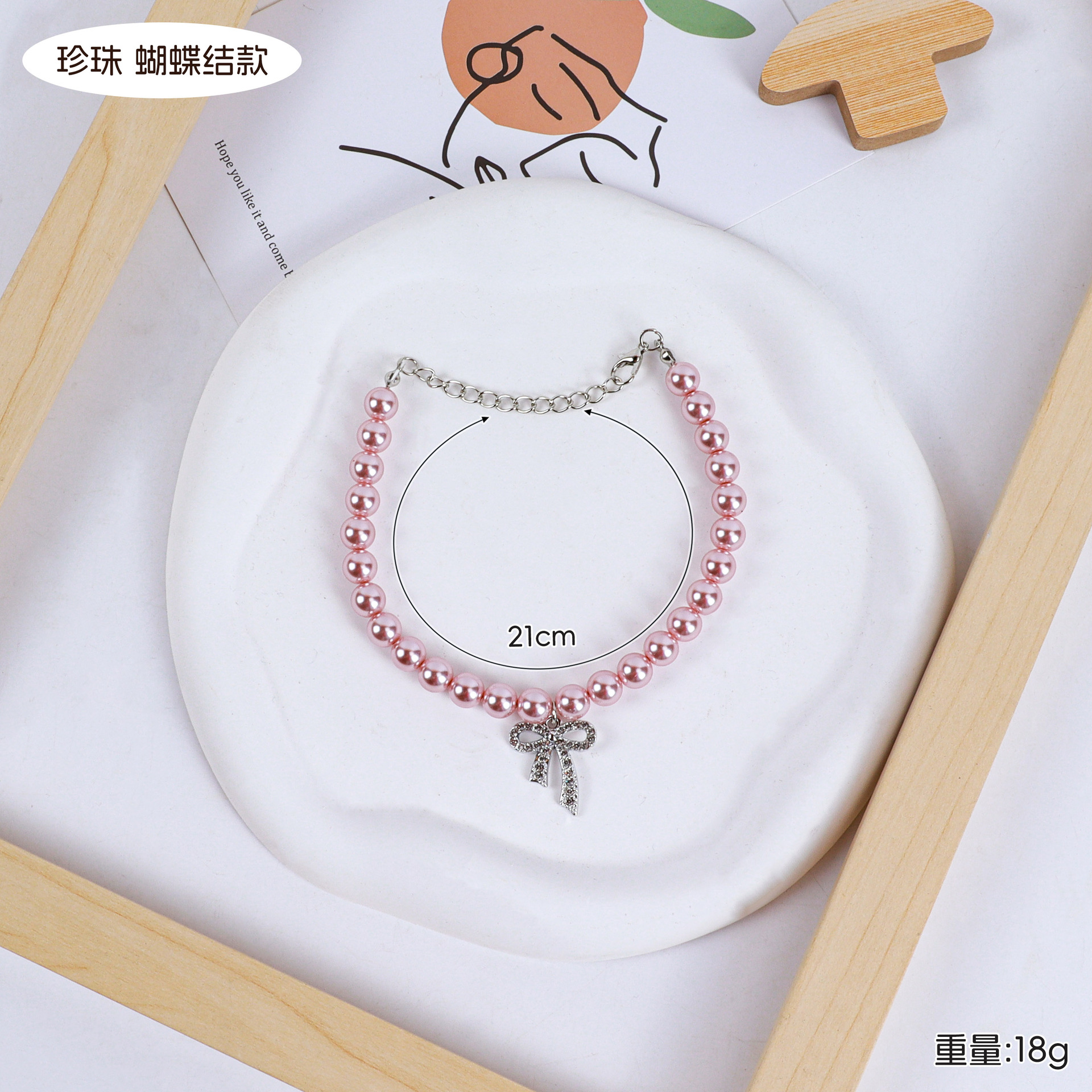 Pet necklace, cat pearl collar, dog neck collar, necklace, retro heart-shaped pendant, cat and dog pet pearl necklace