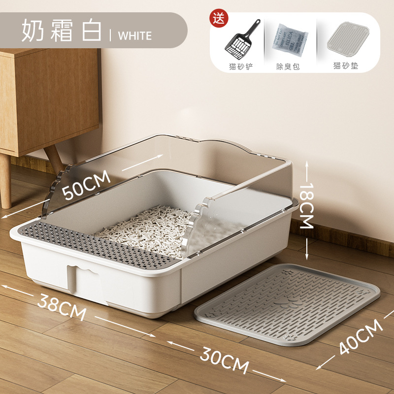 Pet supplies: Extra-large open anti-splash cat toilet, extra-large cat litter box, semi-enclosed cat litter box