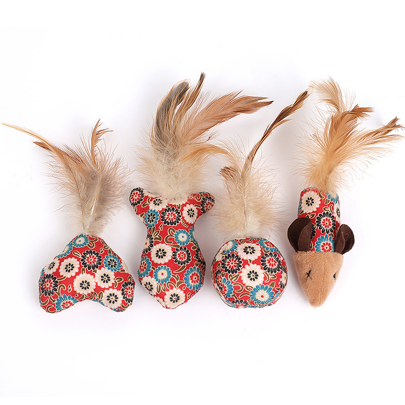 Pet supplies, pet supplies, pet cat toys manufacturer wholesale flower cloth feather cat toys, small fish ball mouse catnip toys