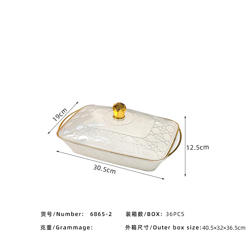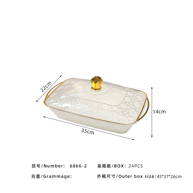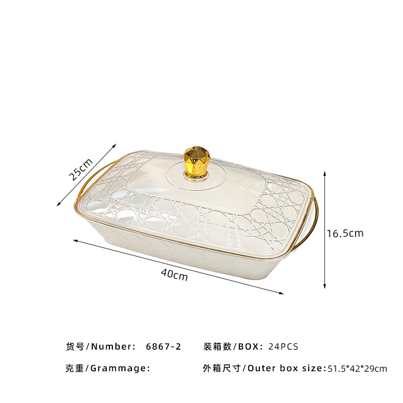 PET transparent patterned fruit platter with lid storage, light luxury and simple octagonal handle fruit platter with lid