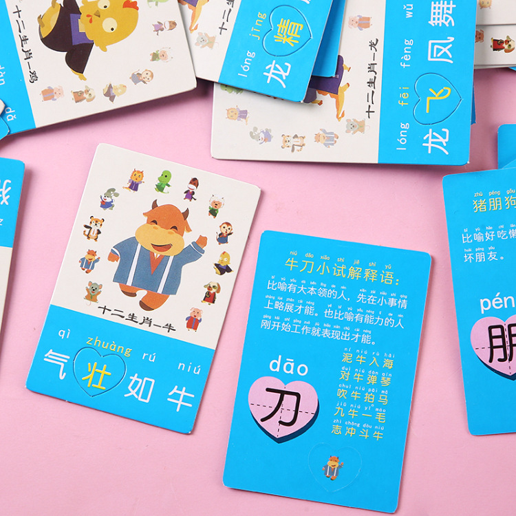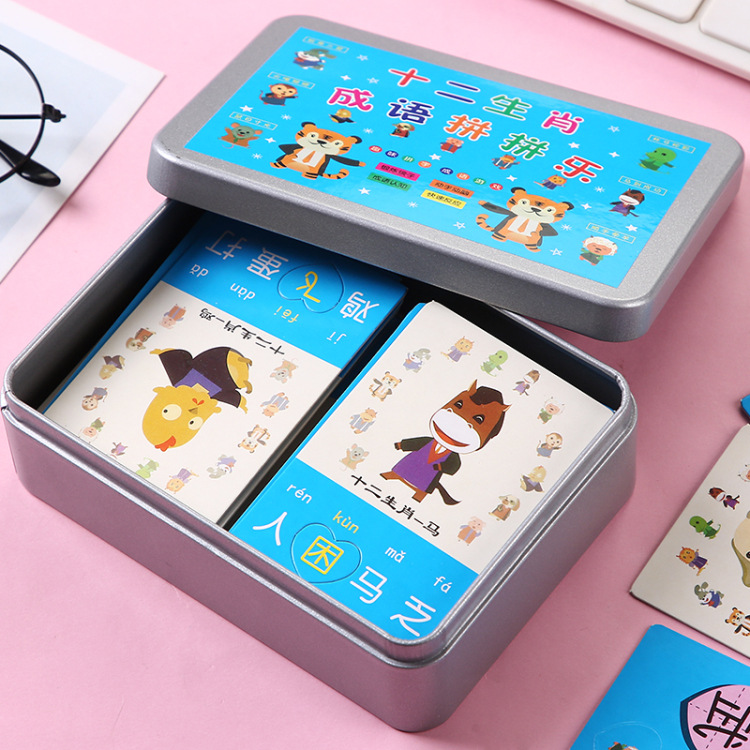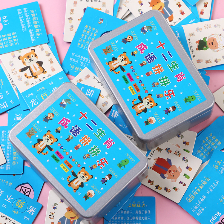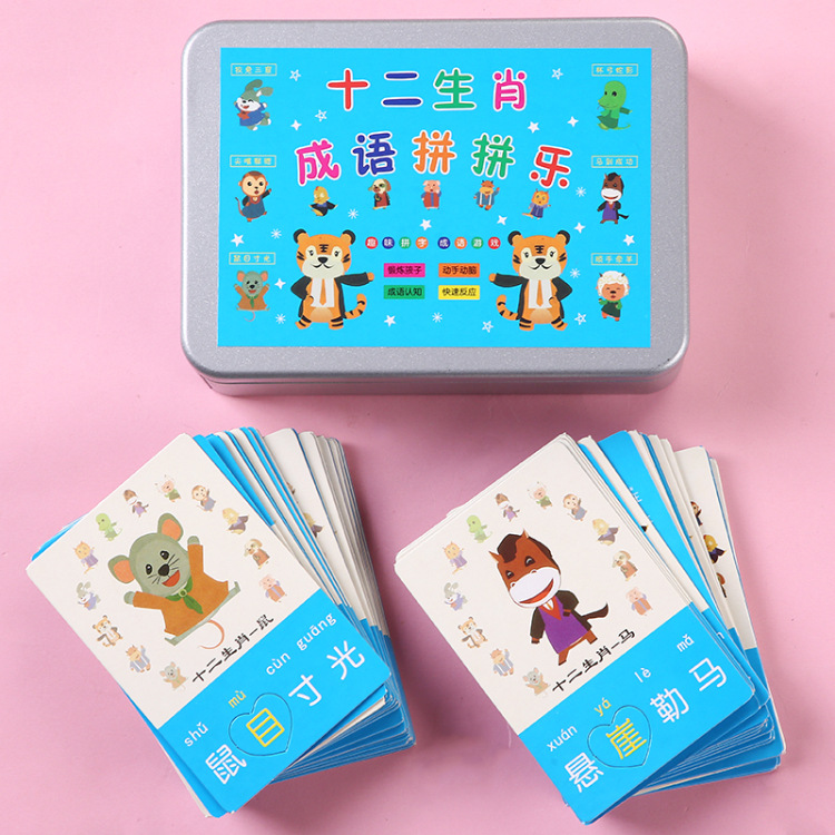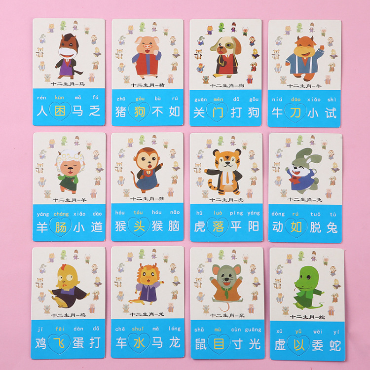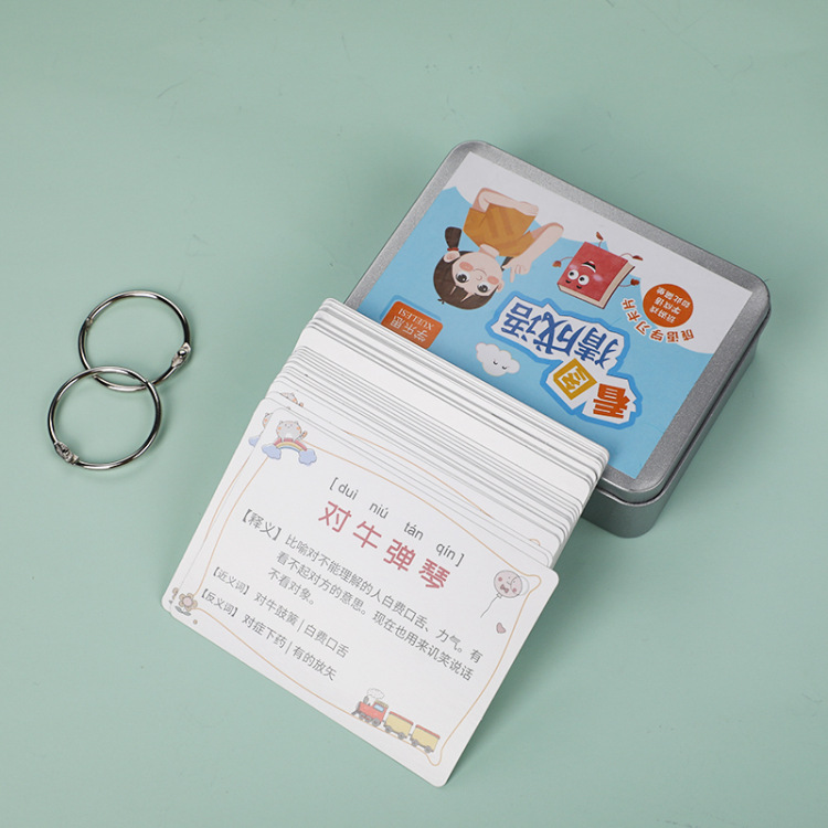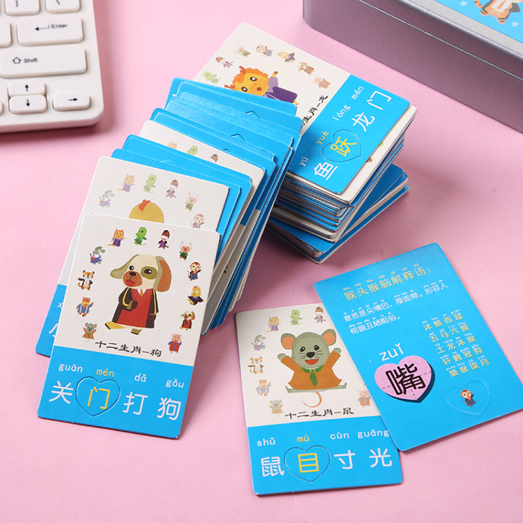 Picture guessing idiom cards, primary school students' phonetic recognition, children's recognition cards, kindergarten intelligence, parent-child interaction