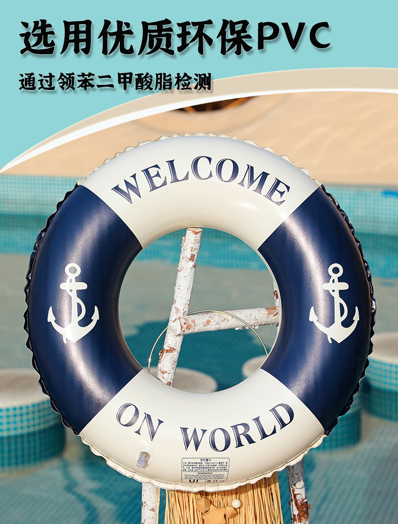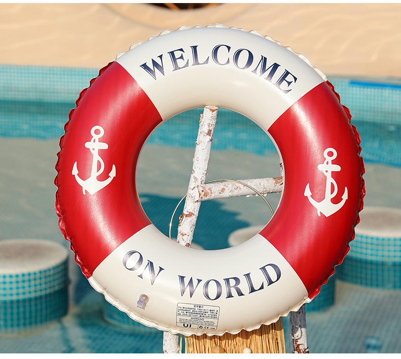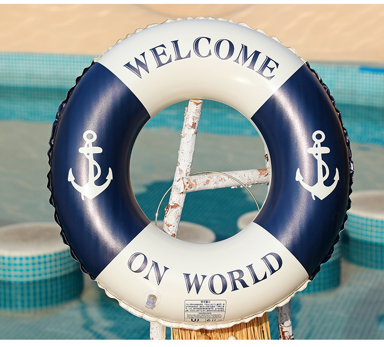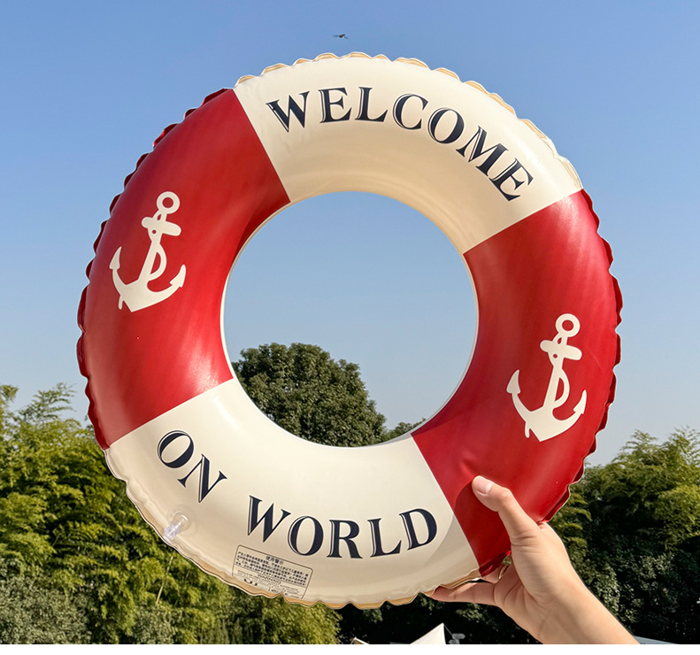 Pirate style anchor swimming rings in stock, thickened material, adult and children's armpit rings, retro color-blocking ocean-style swimming rings