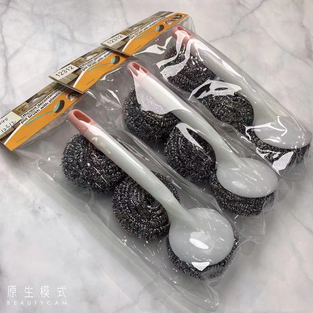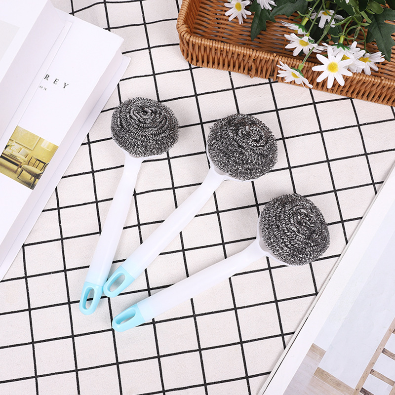 Plastic bowl brush, long-handled pot brush, steel wool ball kitchen cleaning brush, wall-mounted sink and stove cleaning brush