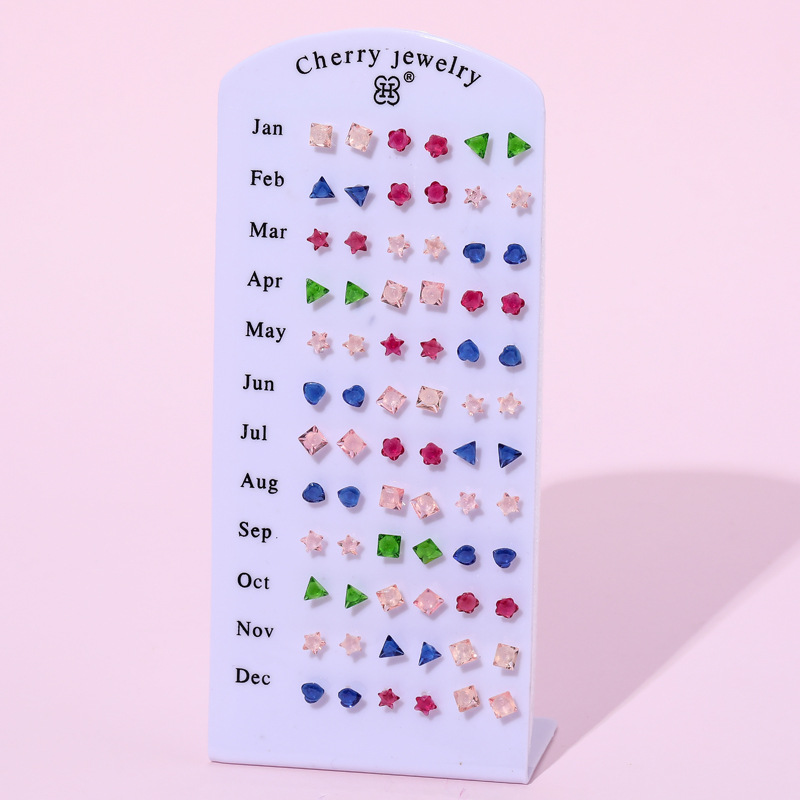 Plastic needle stud earrings for female students, Korean style fashionable geometric earrings, 36 pairs of mixed styles and colors imitation zircon ear piercing stud earrings