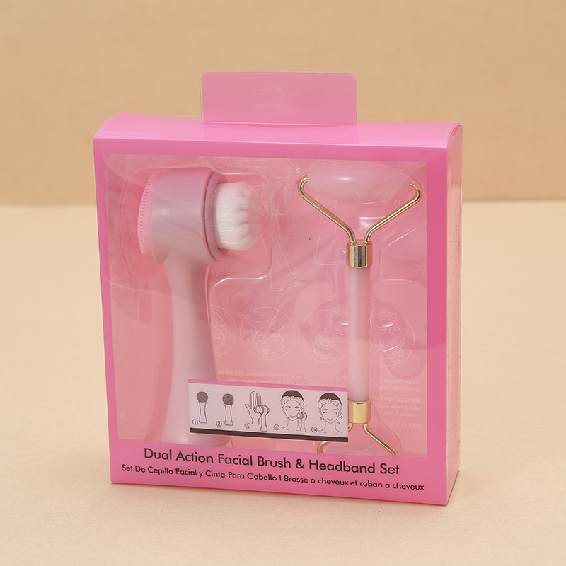 Plastic nylon wool silicone jade roller set, personalized portable facial cleansing set, eye and facial beauty massager