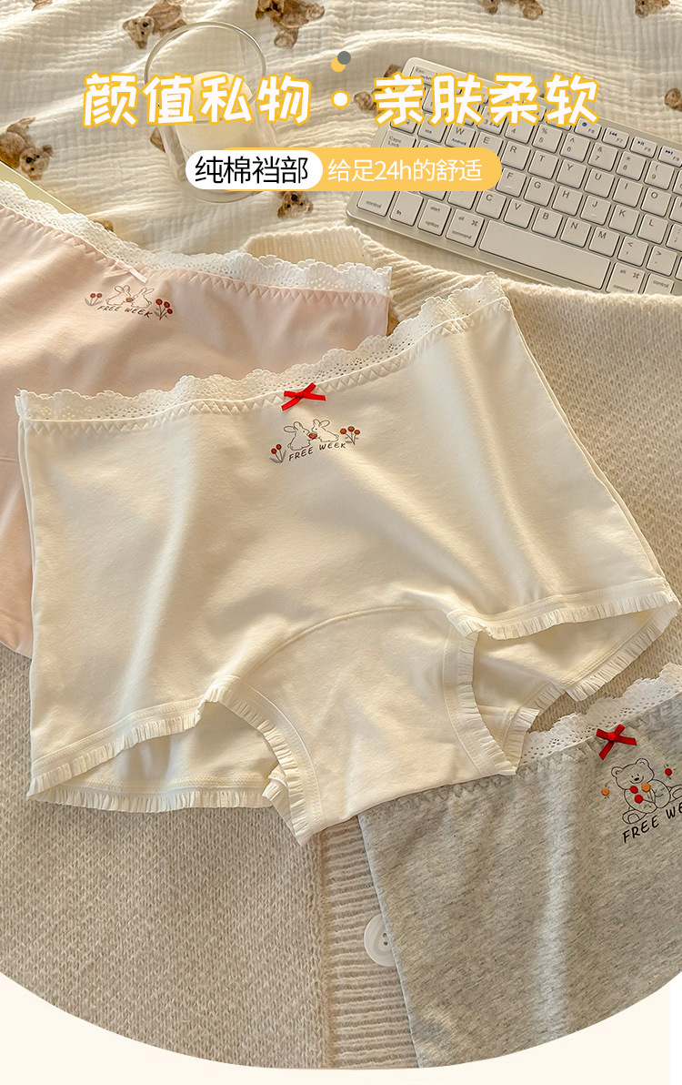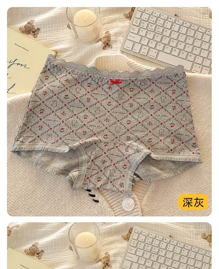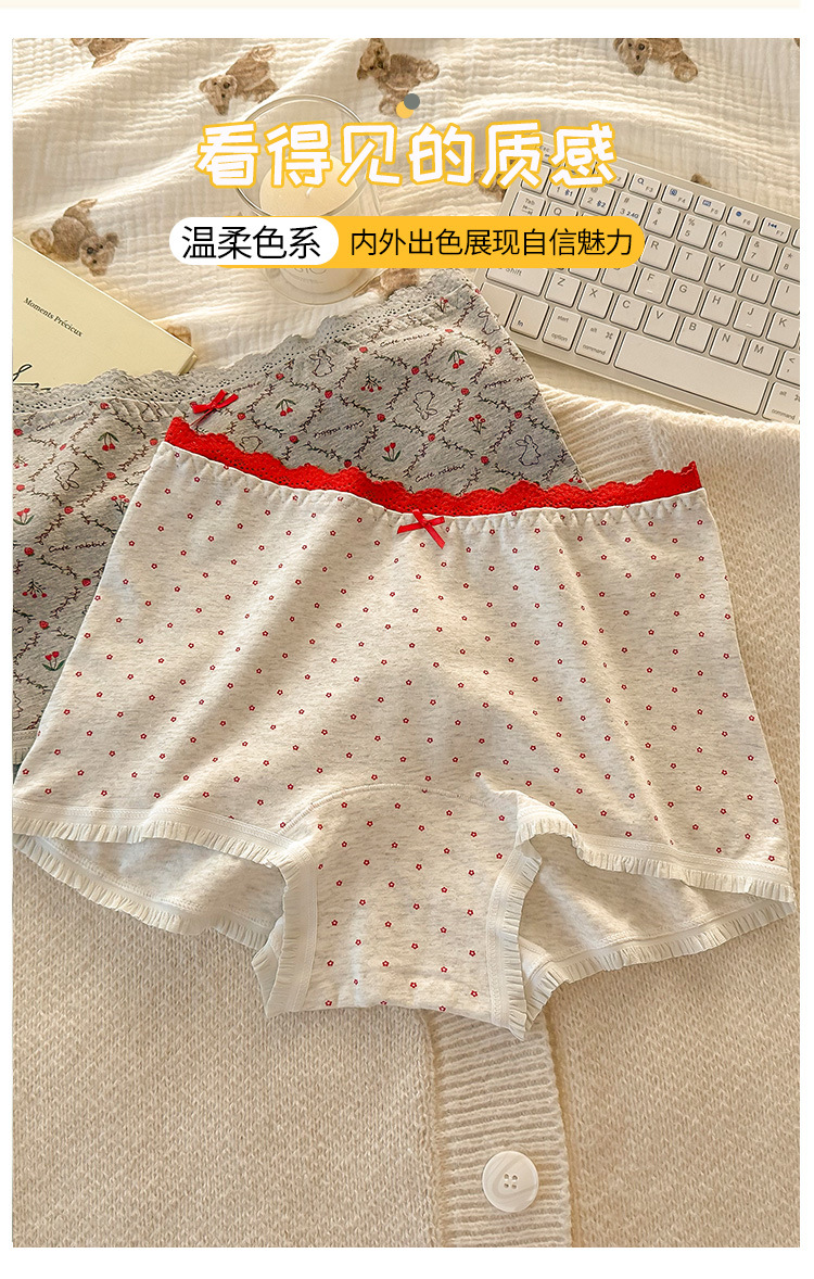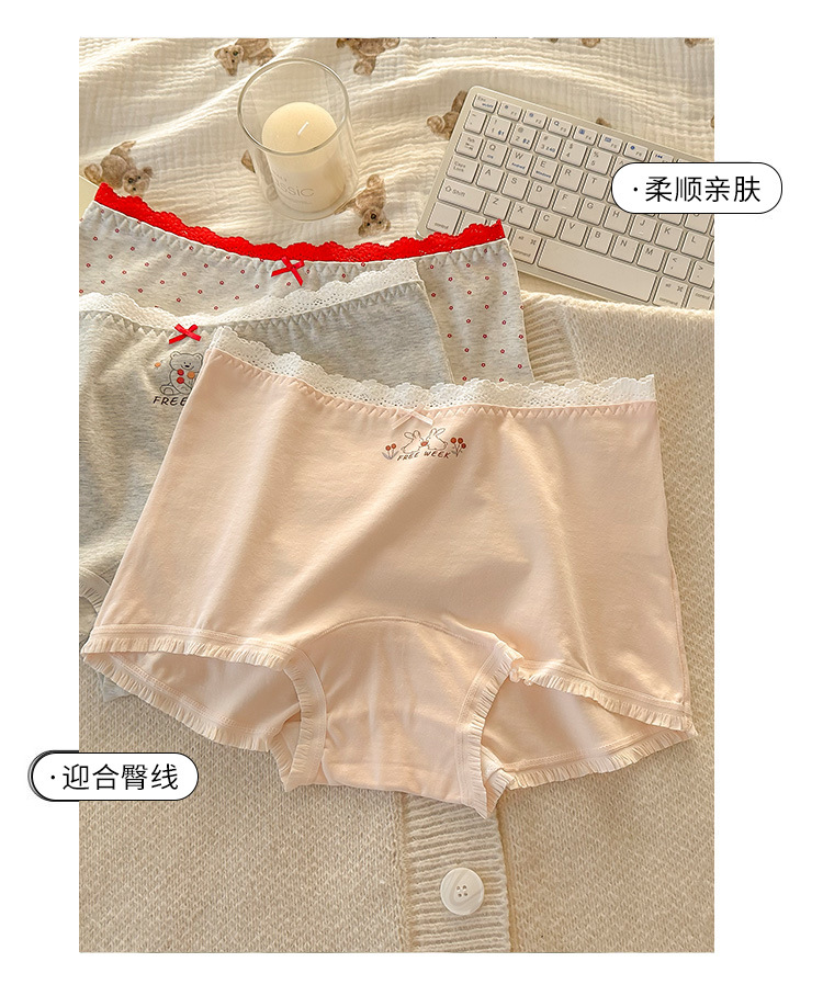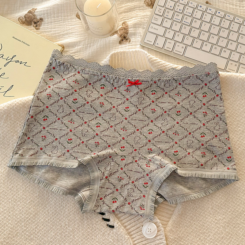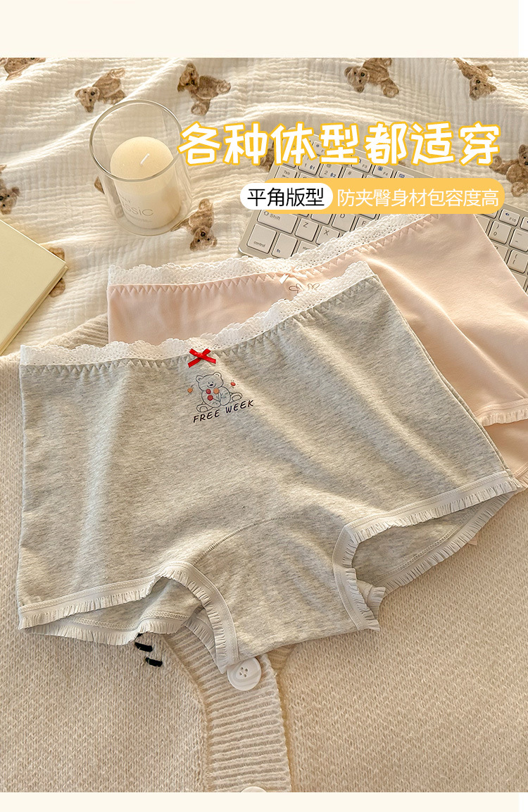 "Playful Story: Japanese-style sweet floral flat corner pants, cute cartoon printed girl, lace-trimmed cotton four-corner pants for girls.