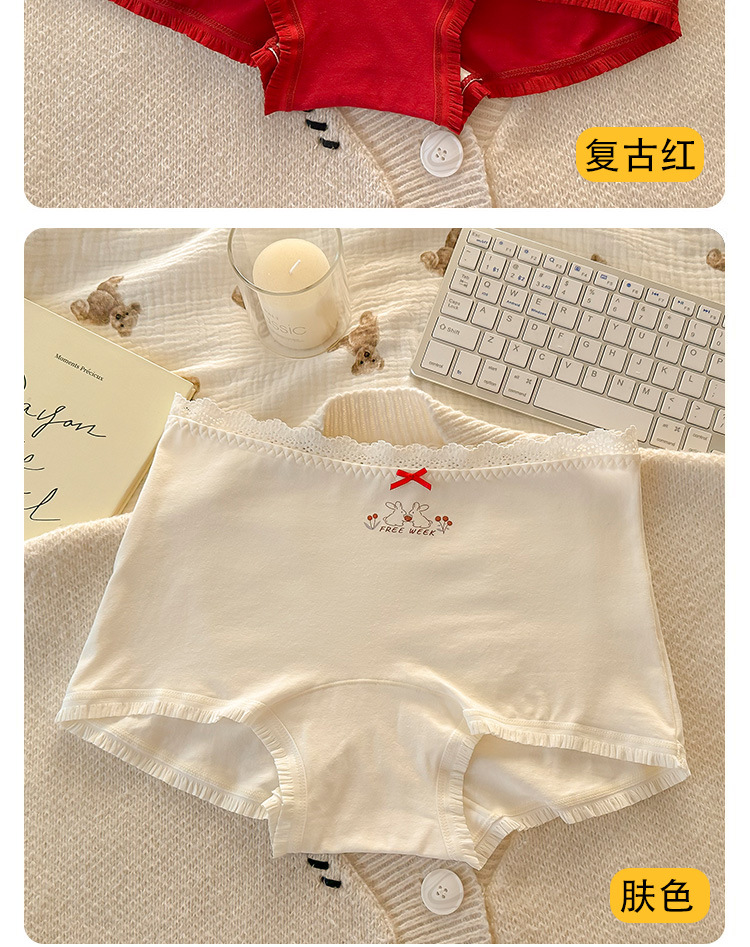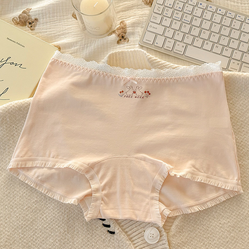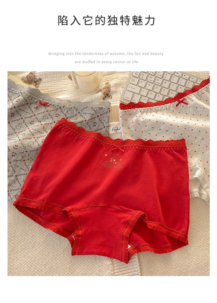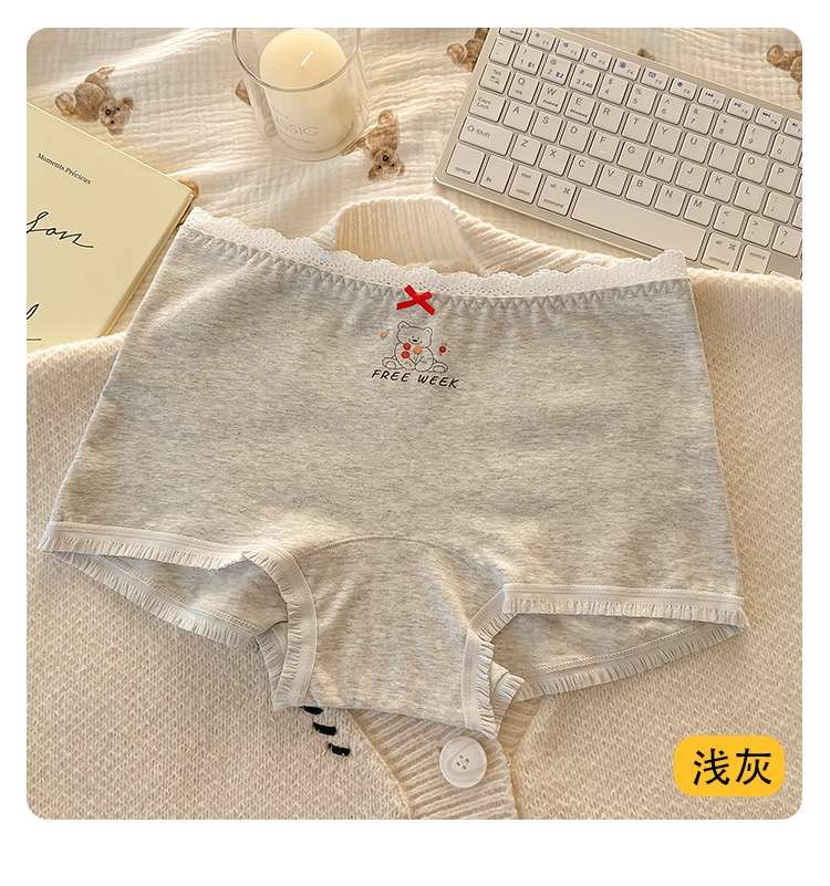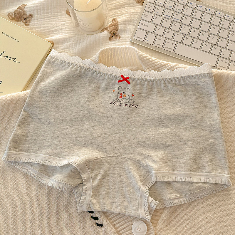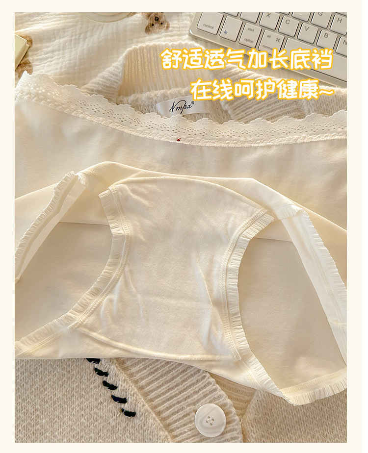 "Playful Story: Japanese-style sweet floral flat corner pants, cute cartoon printed girl, lace-trimmed cotton four-corner pants for girls.