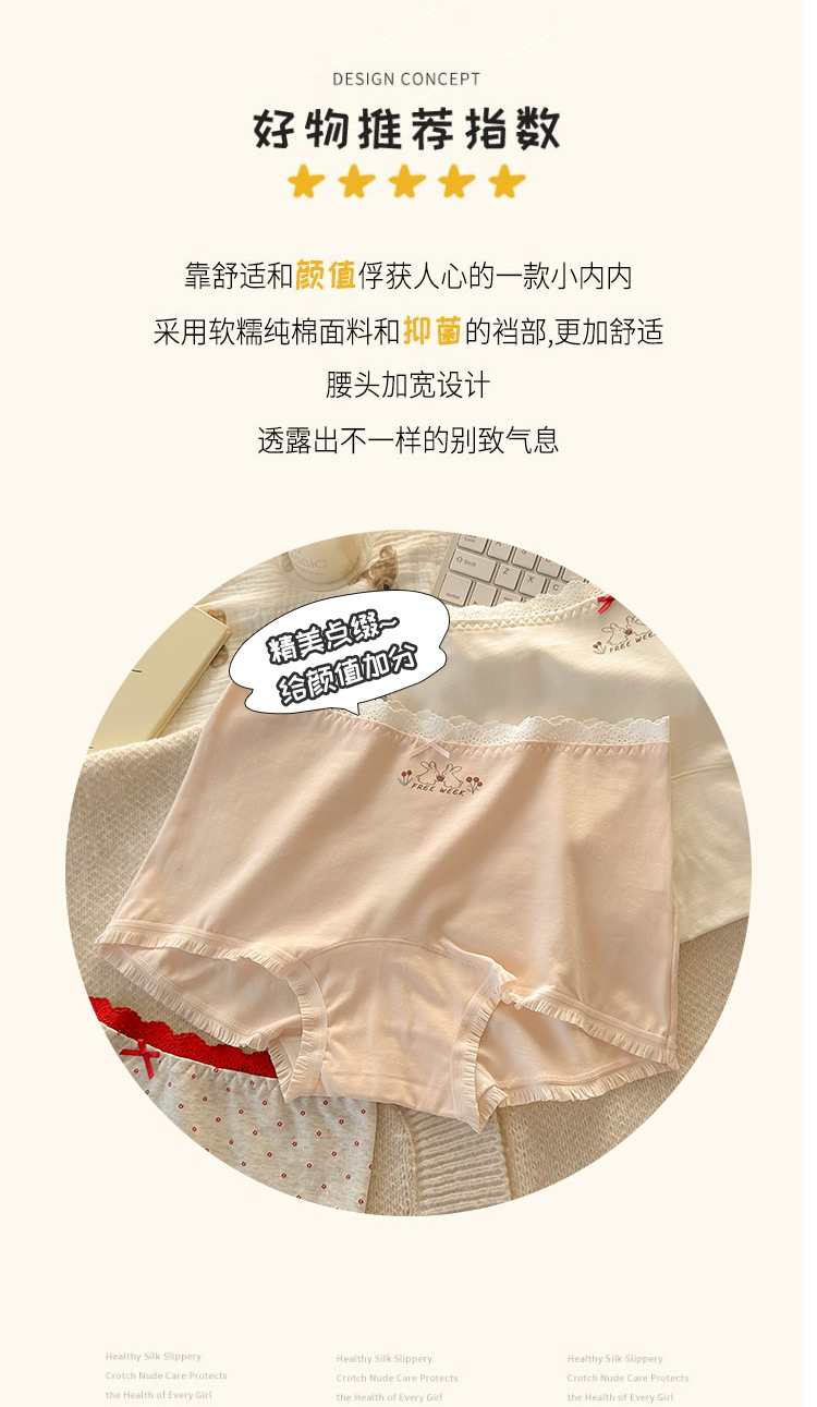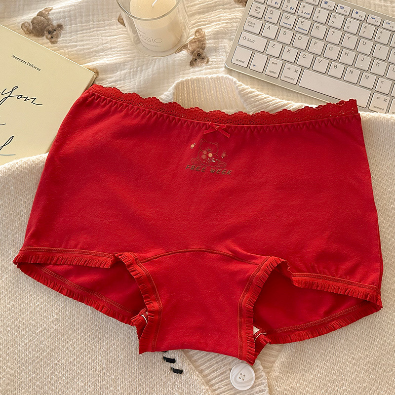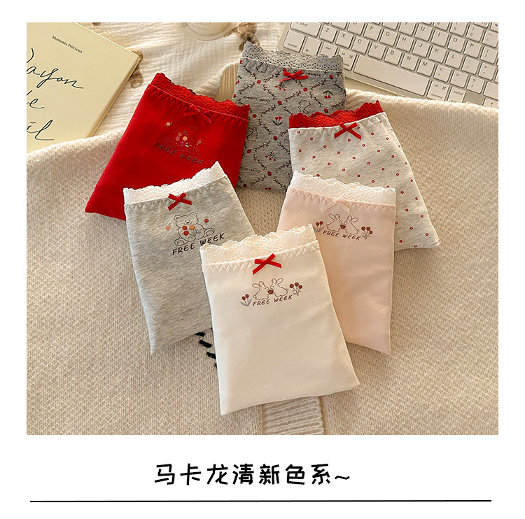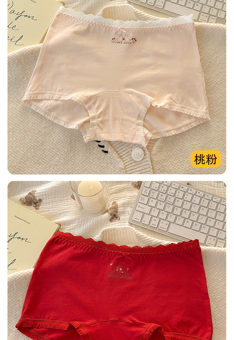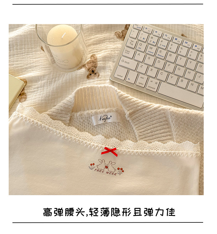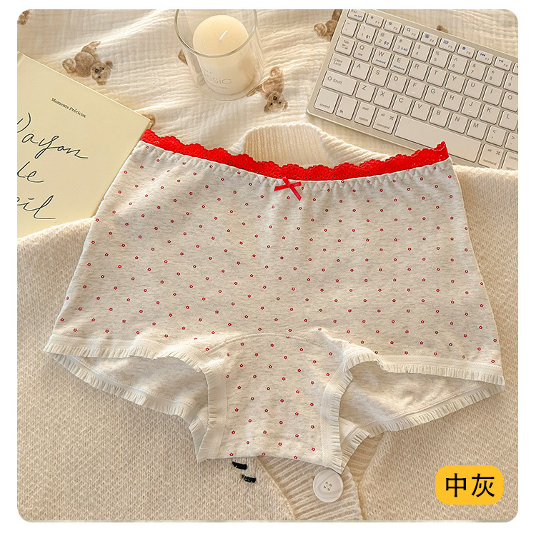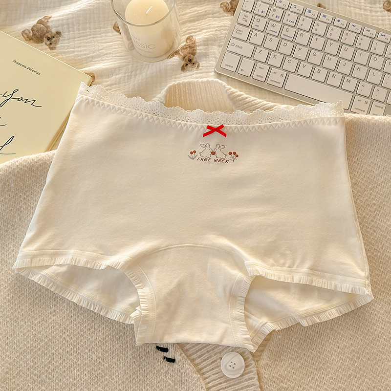 "Playful Story: Japanese-style sweet floral flat corner pants, cute cartoon printed girl, lace-trimmed cotton four-corner pants for girls.