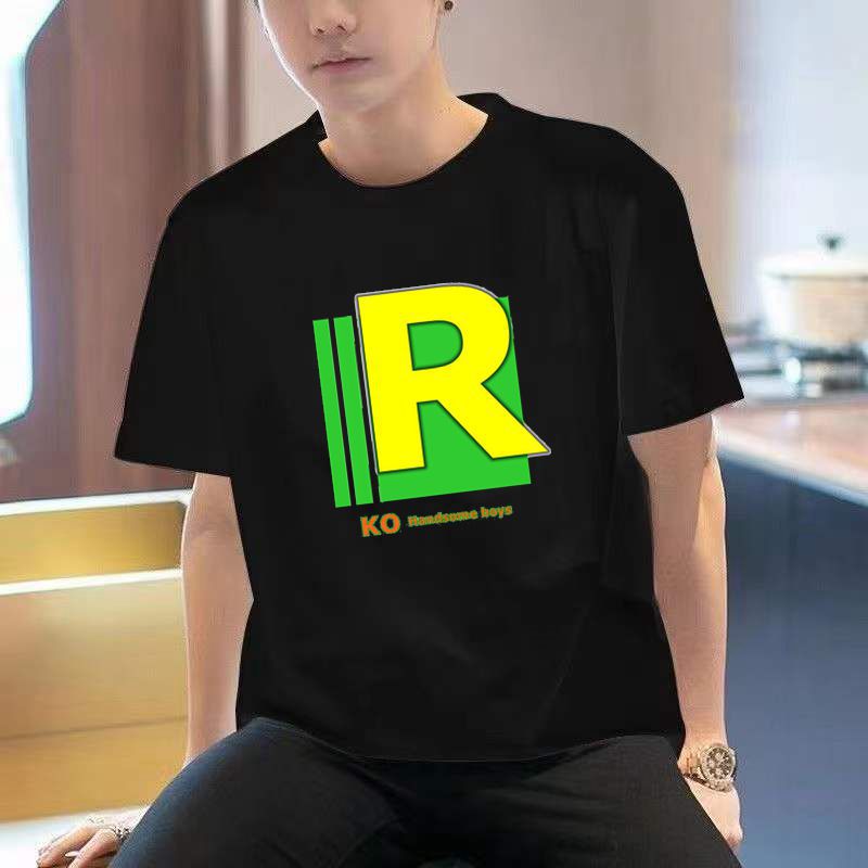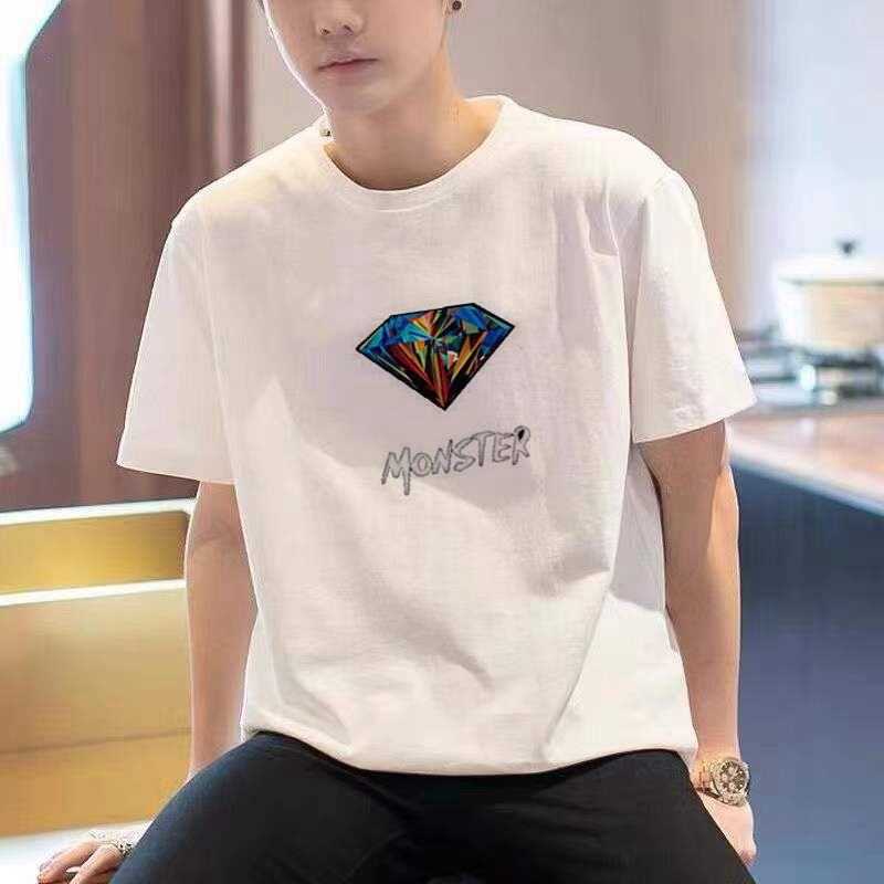 Polyester fiber/short-sleeved T-shirt, men's trendy and versatile casual top, men's round-neck short-sleeved T-shirt, Korean style base layer