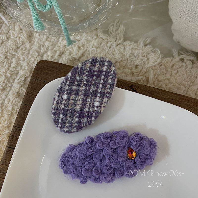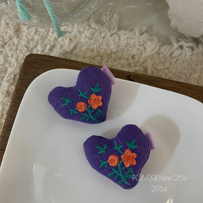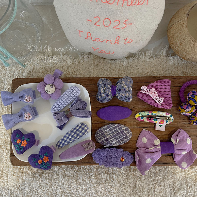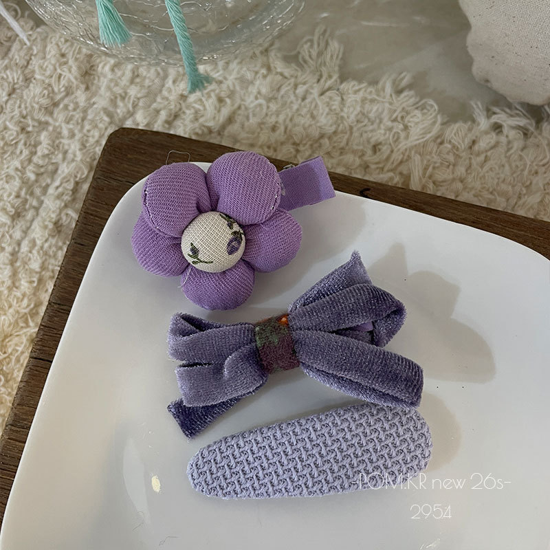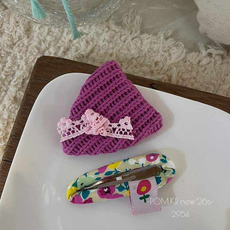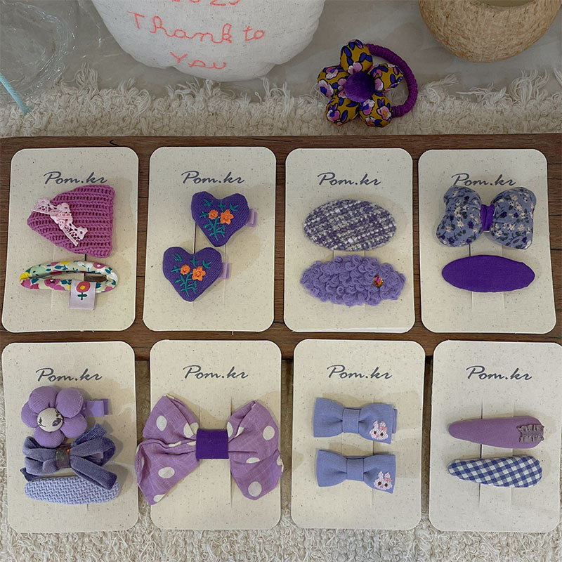 pom.kr Korean version purple fabric handmade children's bye-bye clip retro knitted embroidered flower duck clip headwear for women