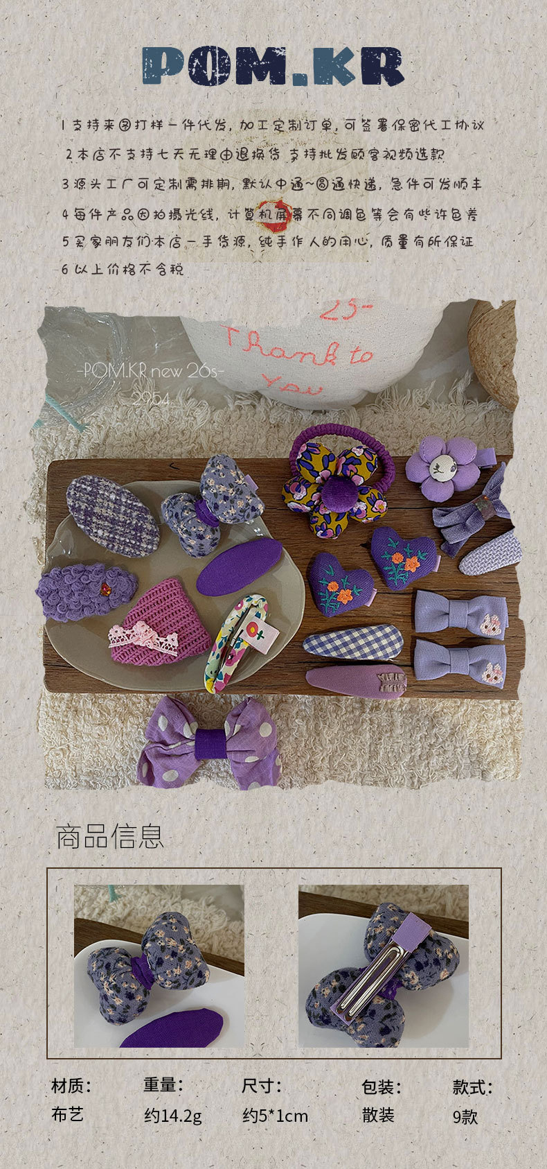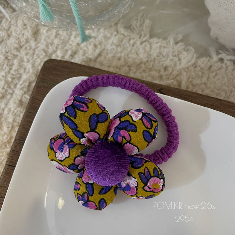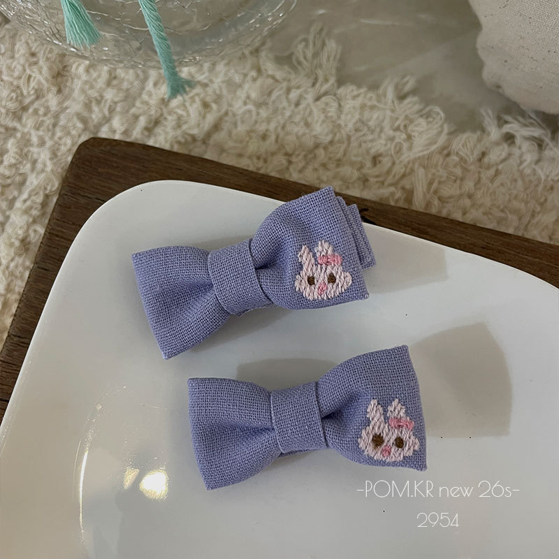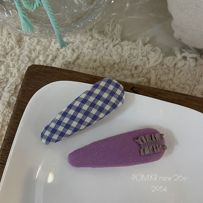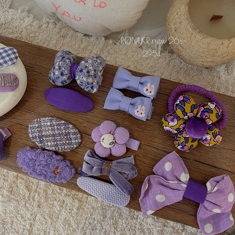 pom.kr Korean version purple fabric handmade children's bye-bye clip retro knitted embroidered flower duck clip headwear for women