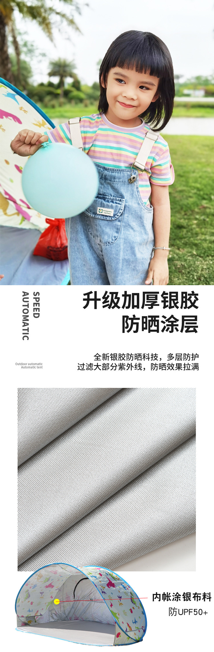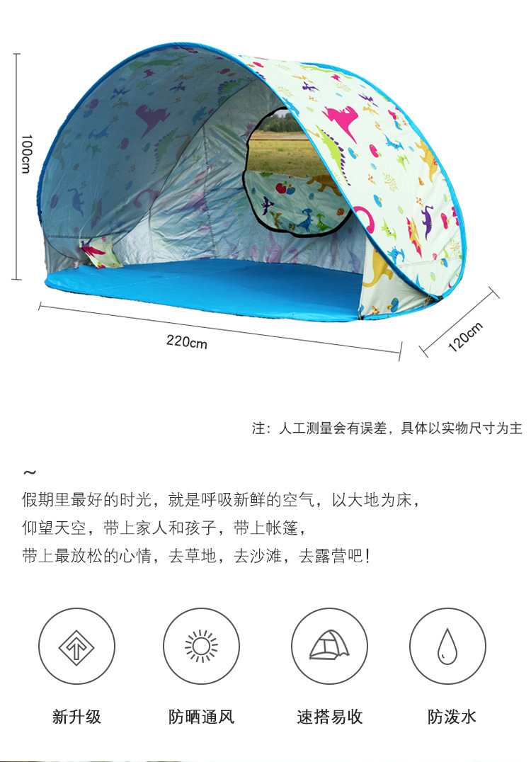 Popular outdoor camping folding portable spring outing, summer sun protection, thickened children's beach and seaside game house