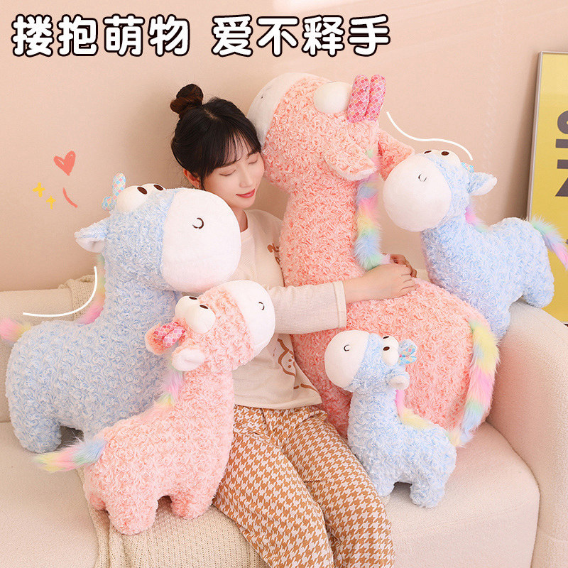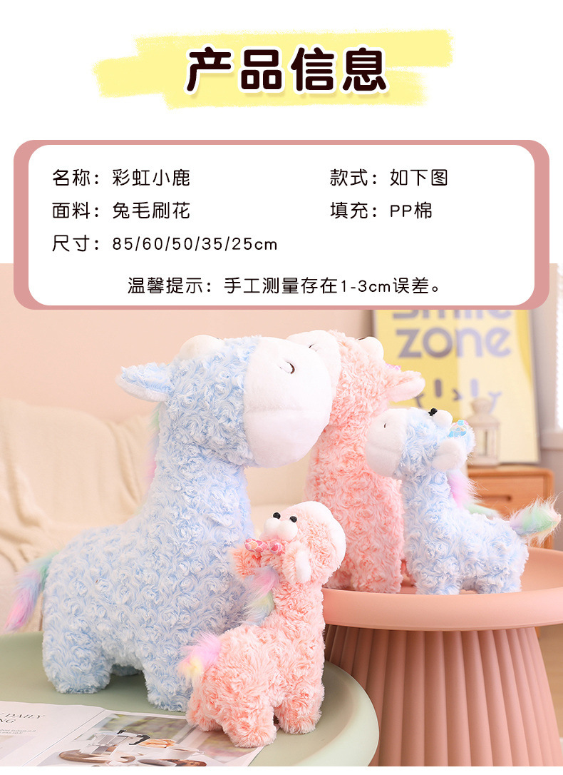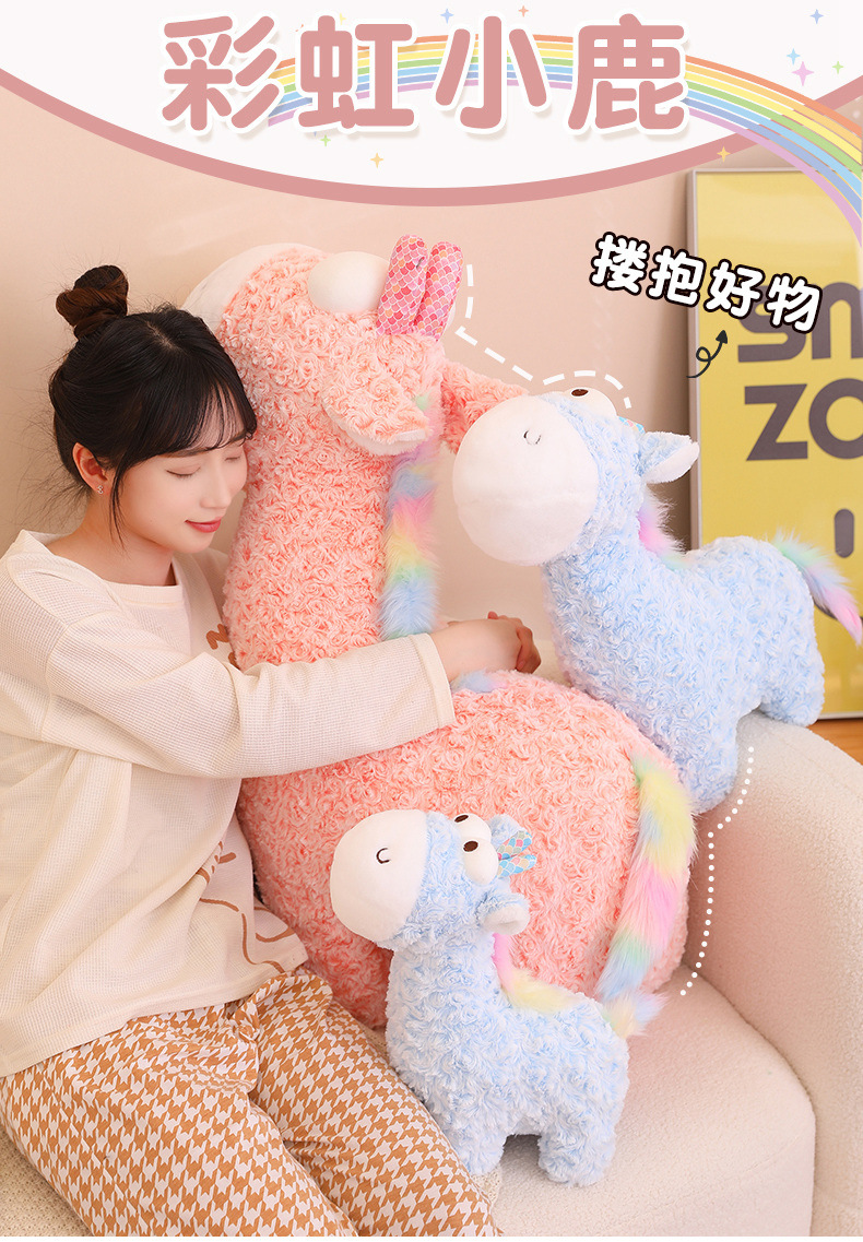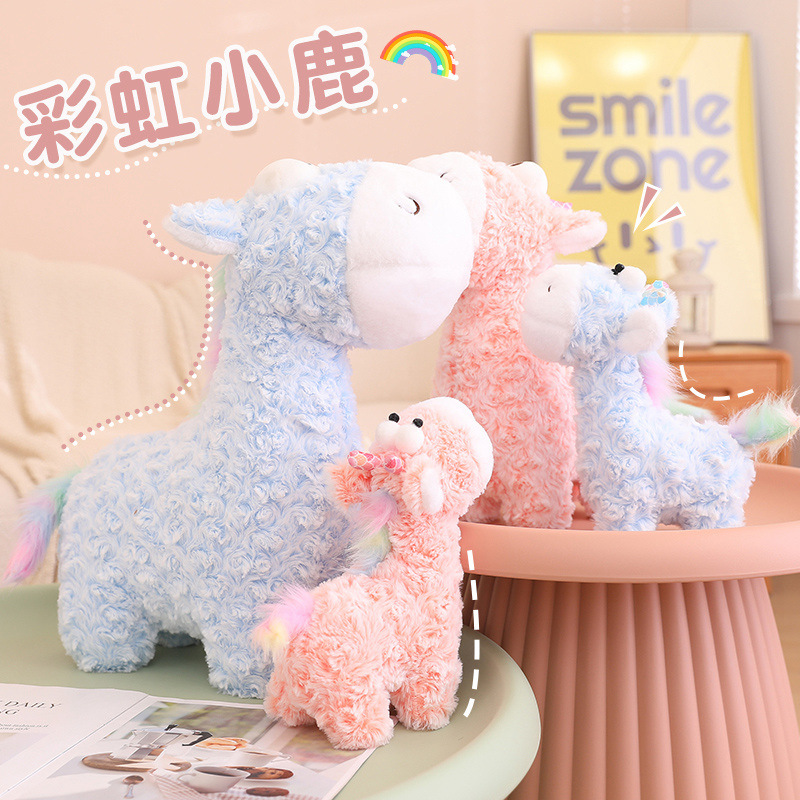 Popular rainbow deer plush toy dolls, bedpress dolls, children's gifts, cute giraffe throw pillows and cushions