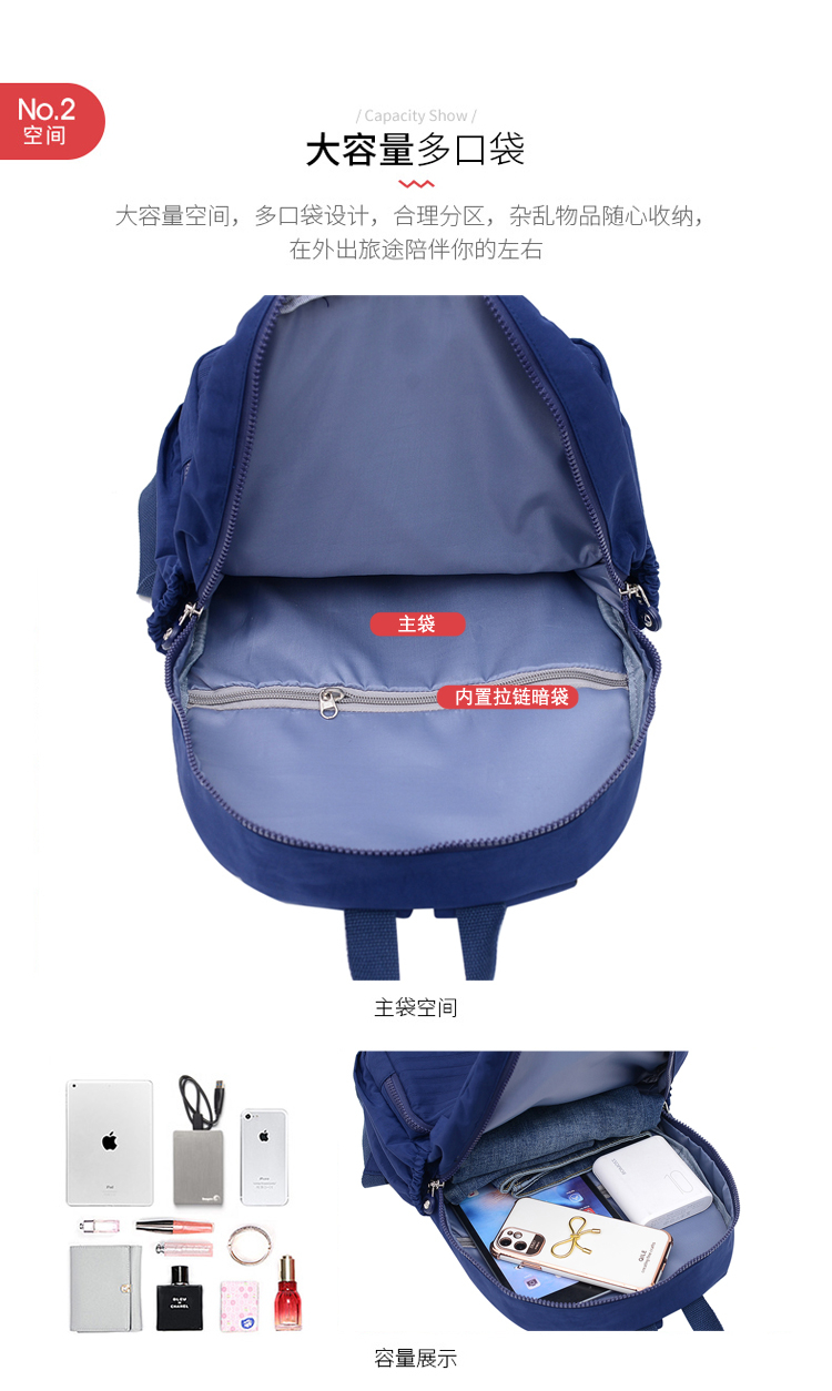 Popular waterproof, exquisite and fashionable travel and shopping women's backpacks, nylon bags, casual backpacks, women's bags, versatile Oxford fabric, large-capacity, multi-purpose women's bags