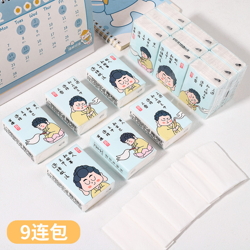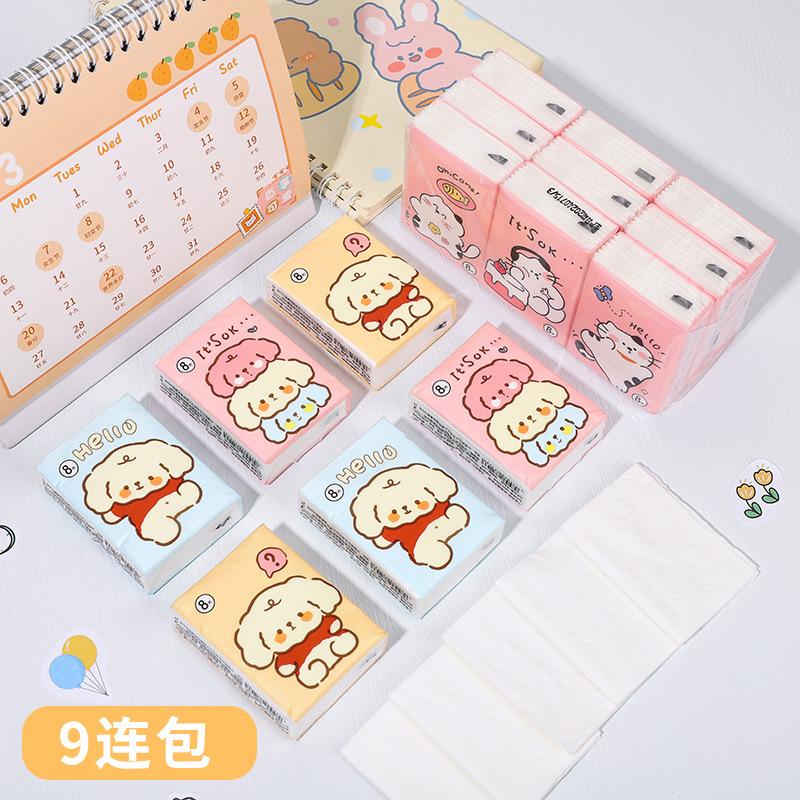 Portable cartoon nine-pack handkerchief paper, small pack three-layer paper, toilet paper, tissue paper, household, essential tissues for students when they go out