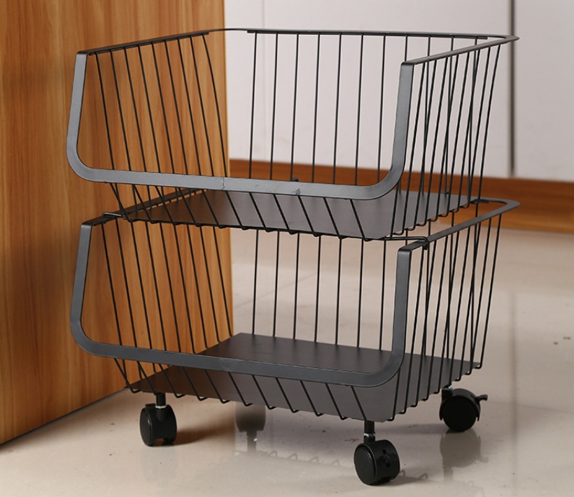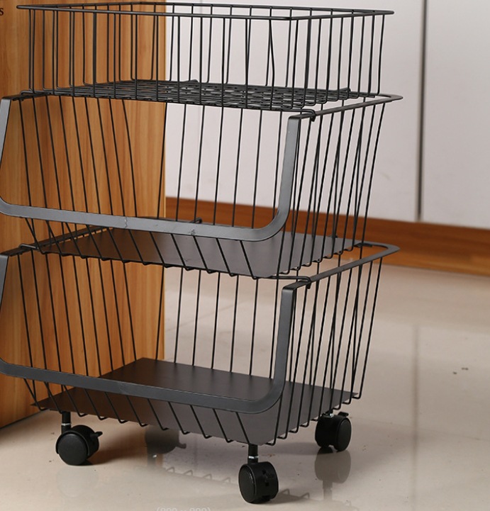 Portable kitchen storage rack trolley, floor-standing vegetable basket trolley, household storage, rotating storage rack, storage rack