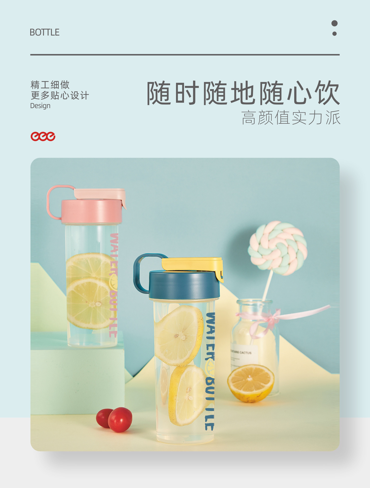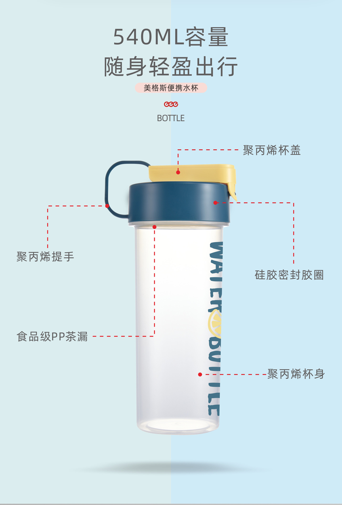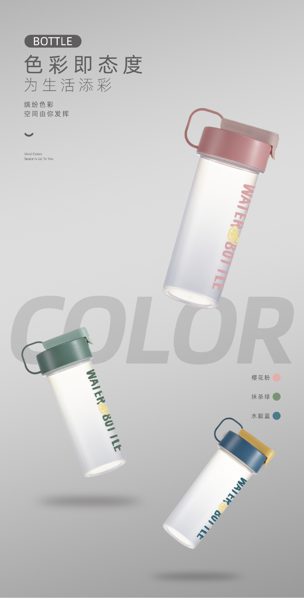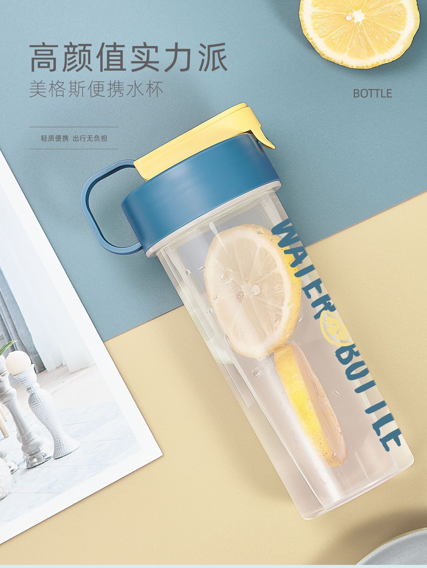 Portable plastic water bottle for students' outdoor sports, summer sealed and leak-proof water cup gift