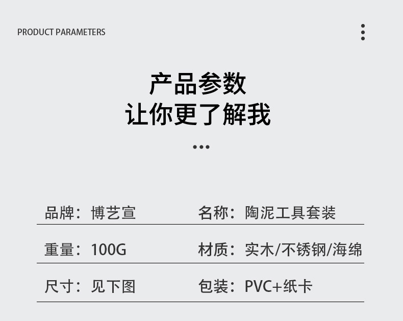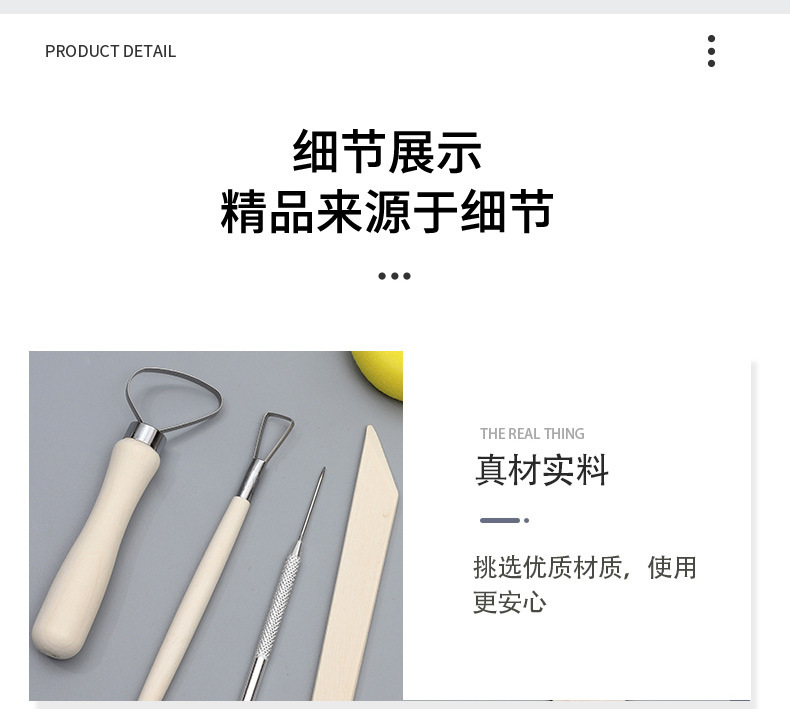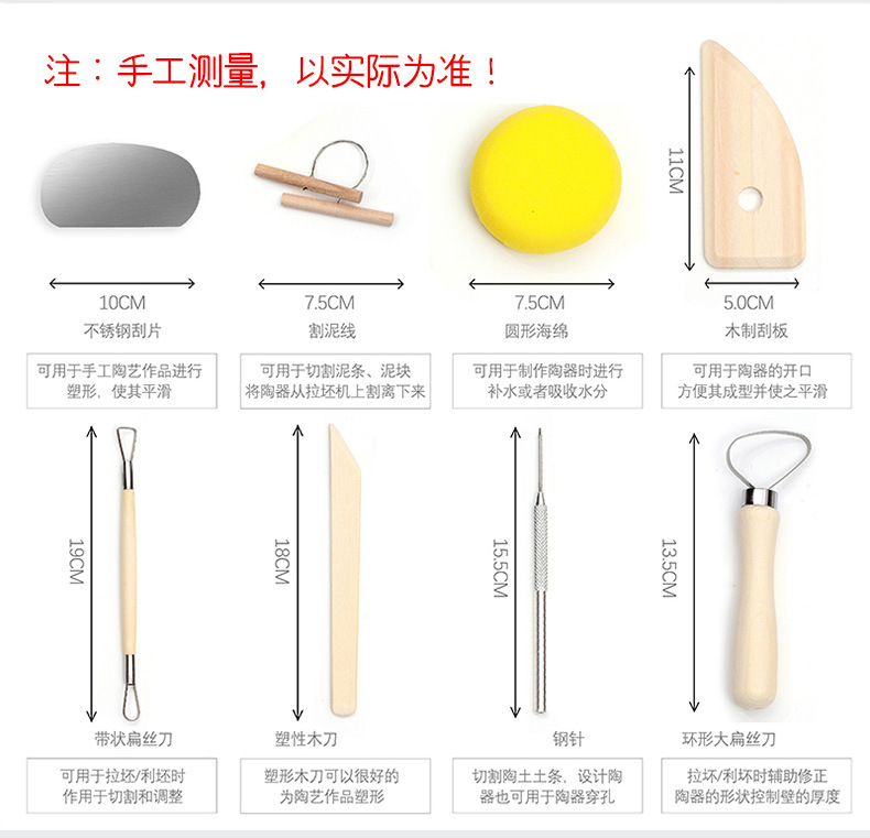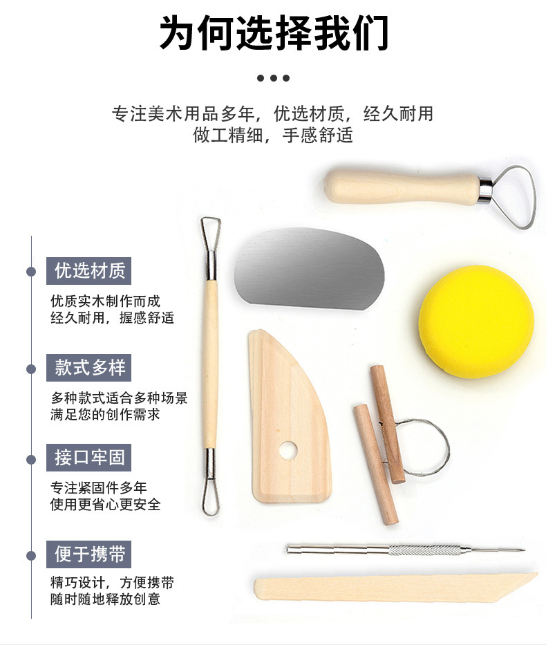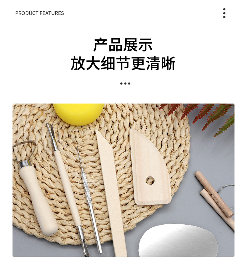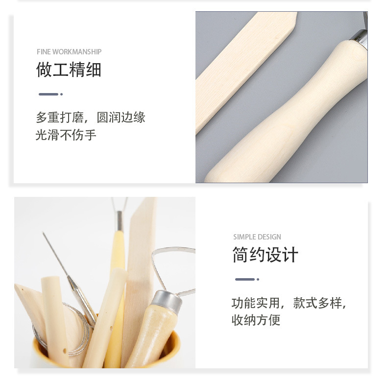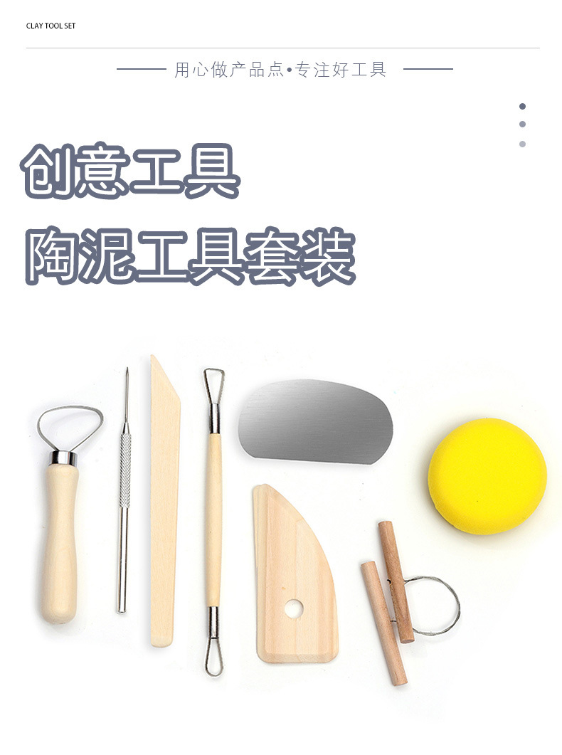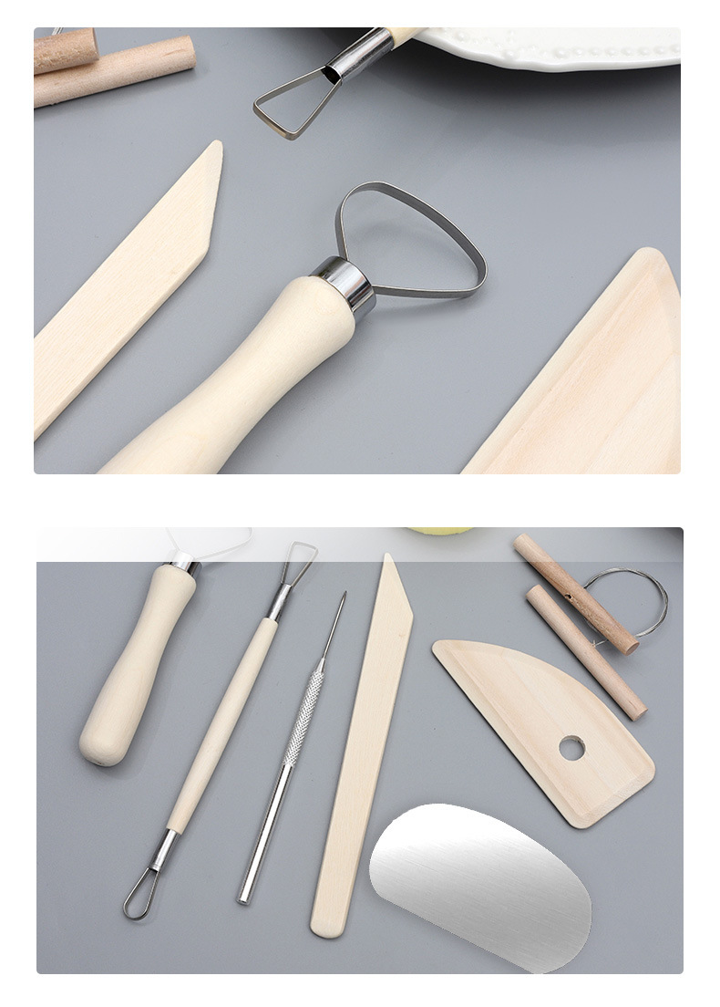 Portable PVC paper card wooden 8-piece beginner's diy clay carving and clay sculpture set, pottery tools