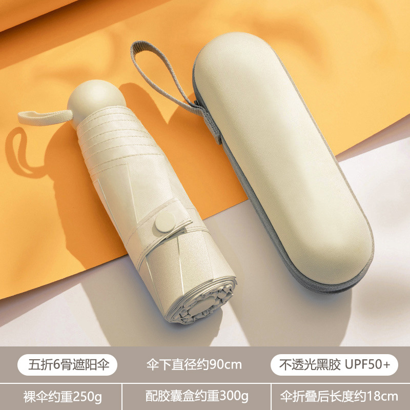 【 Pure Beige 】 Five-fold reinforced 8-bone black plastic umbrella