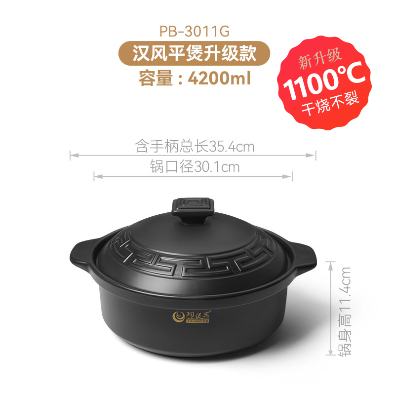 Pottery Pot King Han-style hot pot for shabu-shabu can be dry-cooked without cracking. Clay pot fish head pot, ceramic clay pot for making soup and soaking
