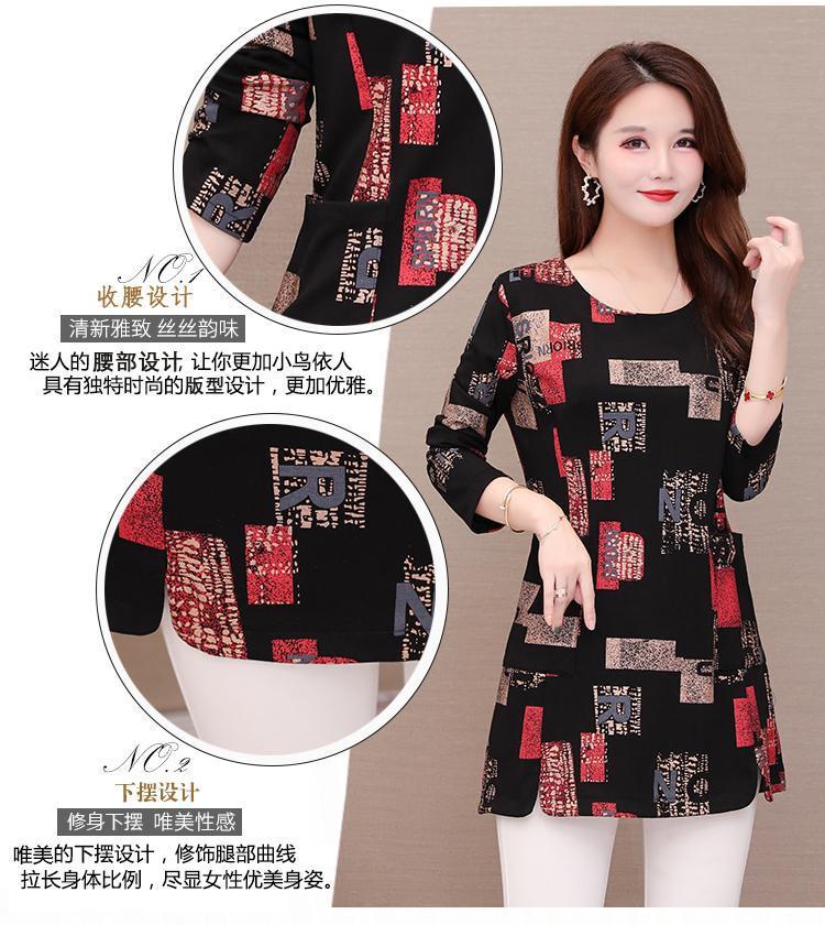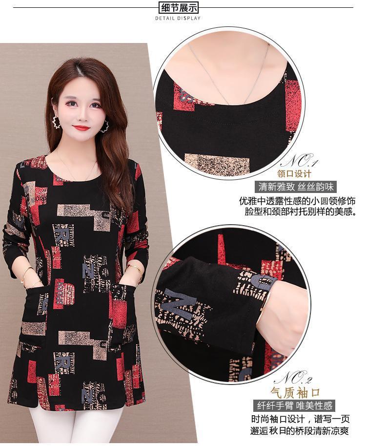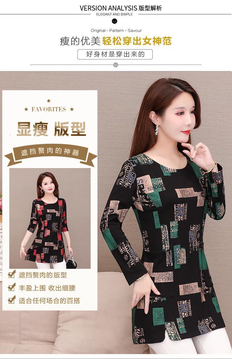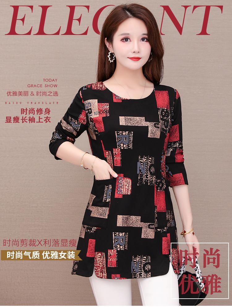 Printed base layer, mid-length women's 2021 autumn collection, slimming and fashionable, large-sized loose, belt-covering letter long-sleeved top