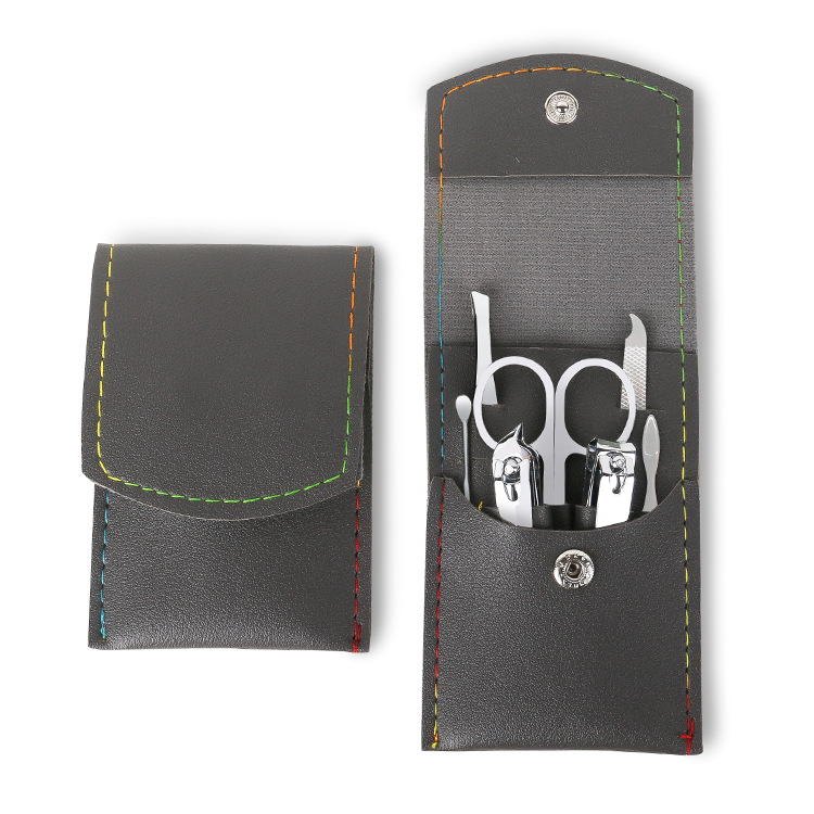 Printed logo gift nail clipper set, beauty and nail care tools, snap leather case 7-piece set, nail clipper set