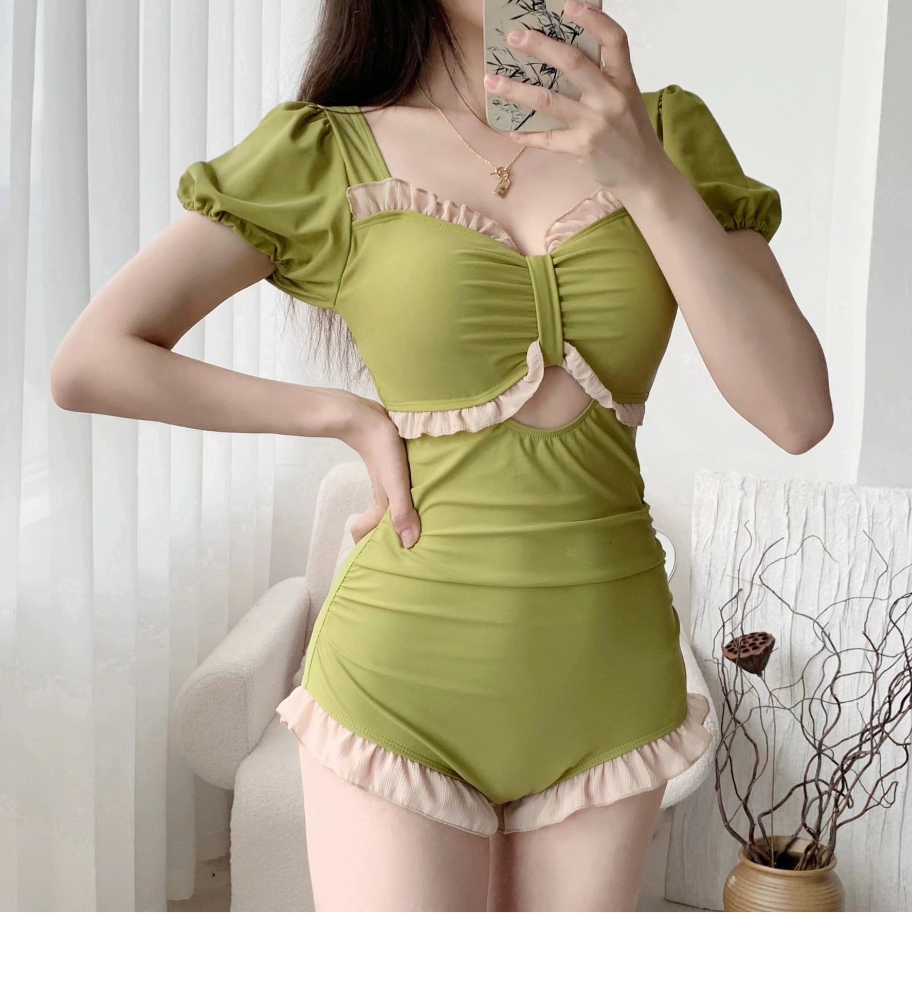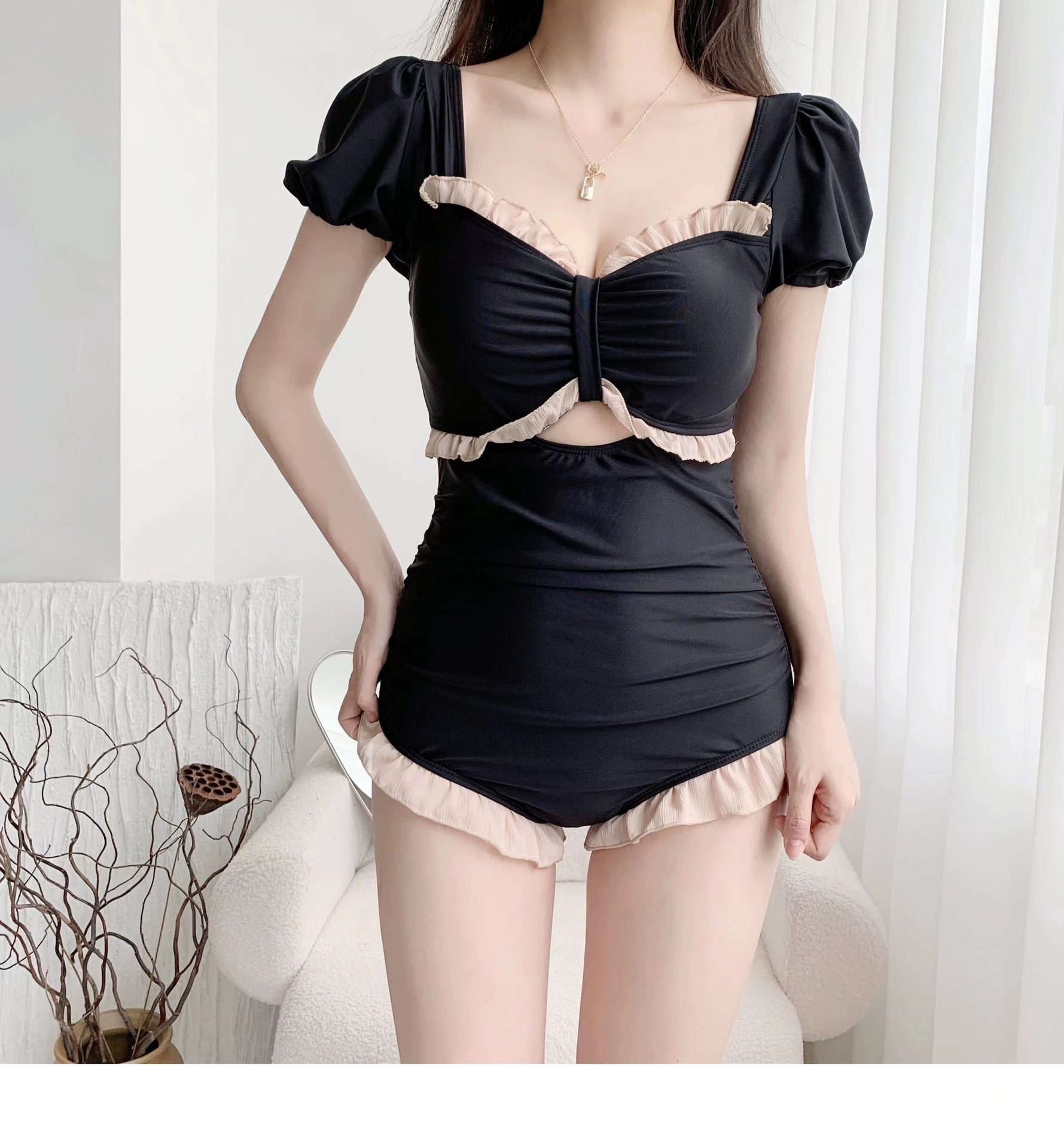 Professional wholesale of women's one-piece swimwear with a pure sexual style, retro and cute girl, conservative and slimming, hot spring vacation swimwear