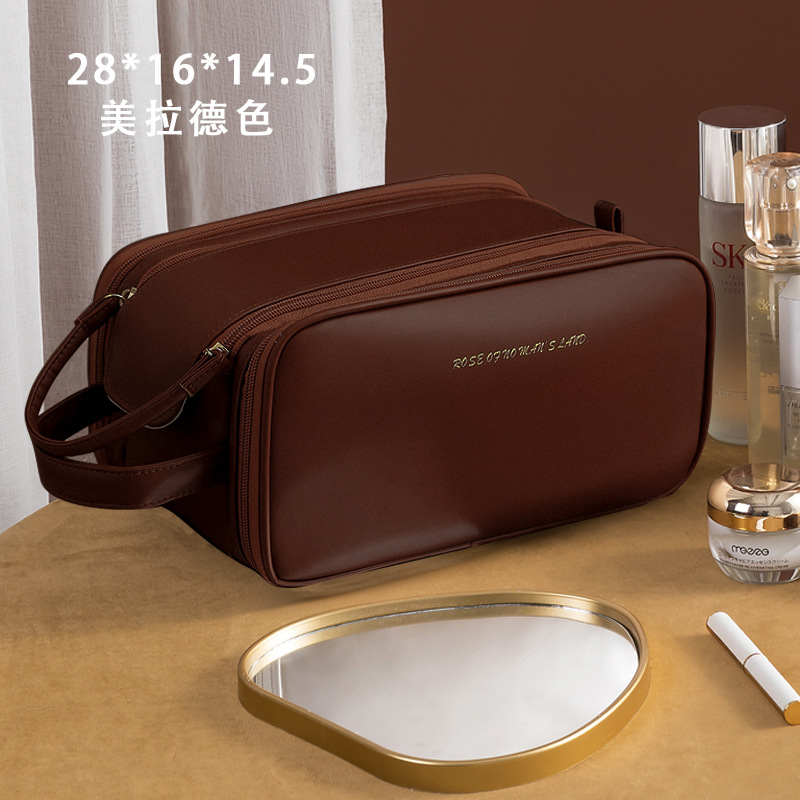 PU makeup bags with large capacity, high-end feel, and zoned storage. Toiletry bags and makeup bags for women, portable and ins style, starting from one