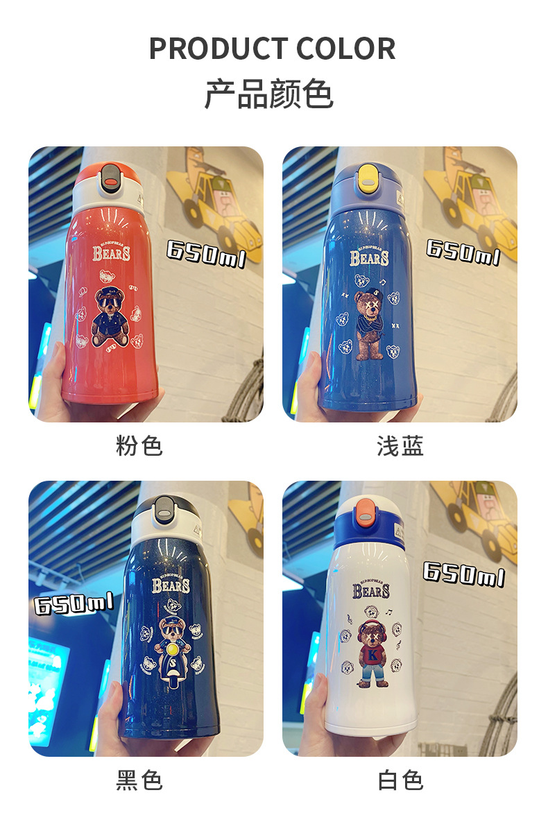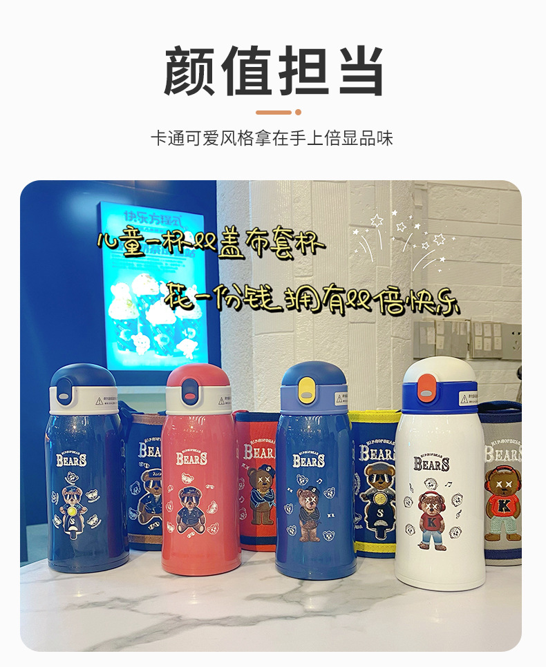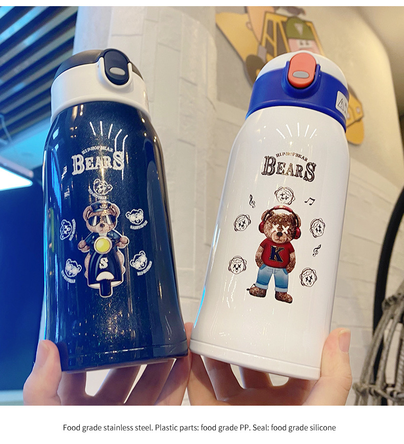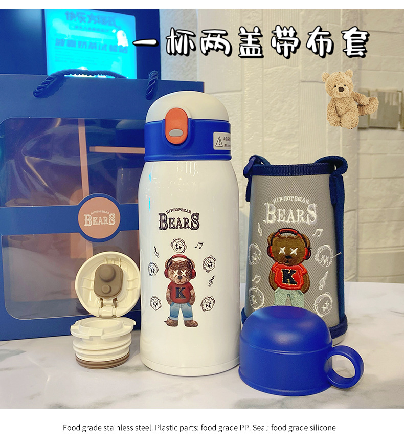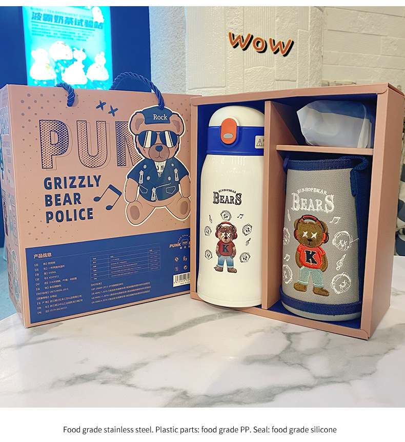 Punk Bear Cute Children's Insulated Cup Gift Box Set, 316 stainless steel Cartoon Water cup wholesale for the back-to-school season