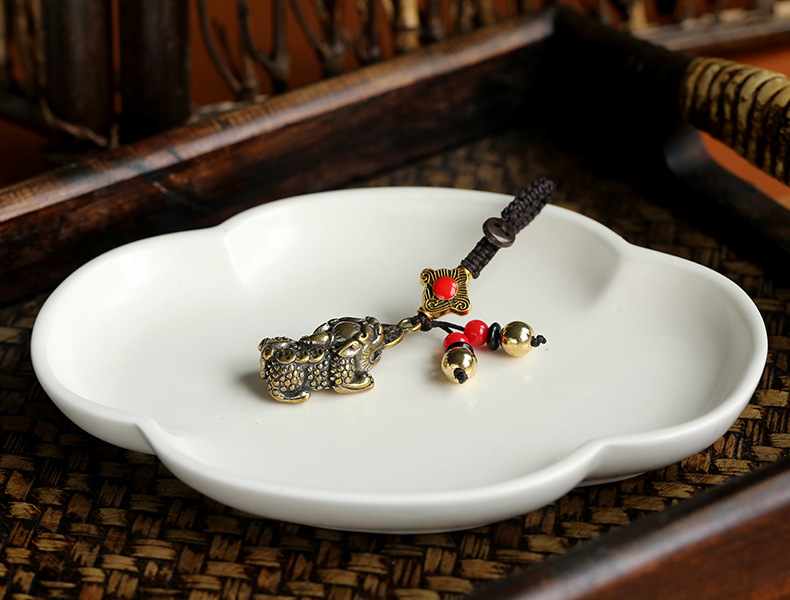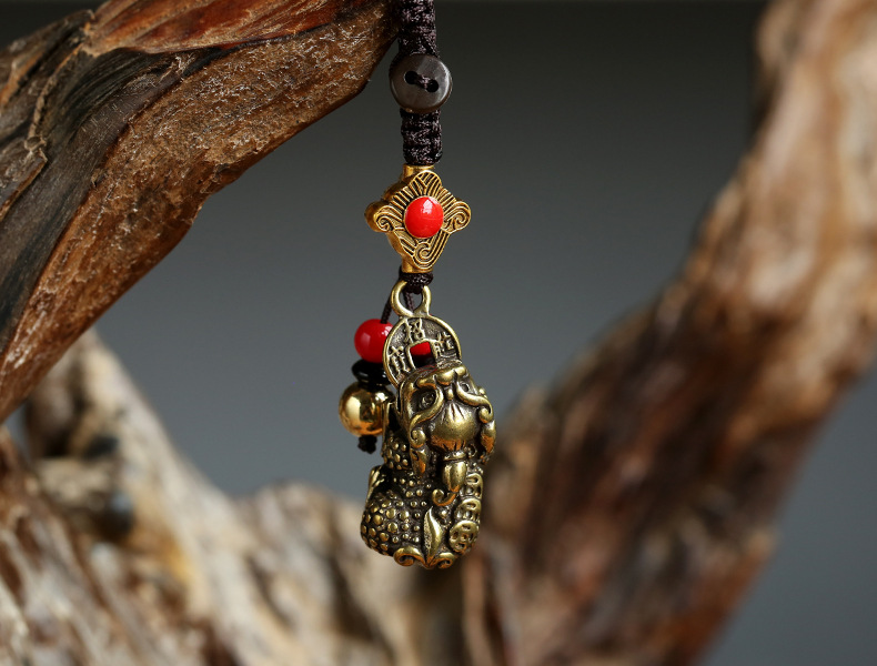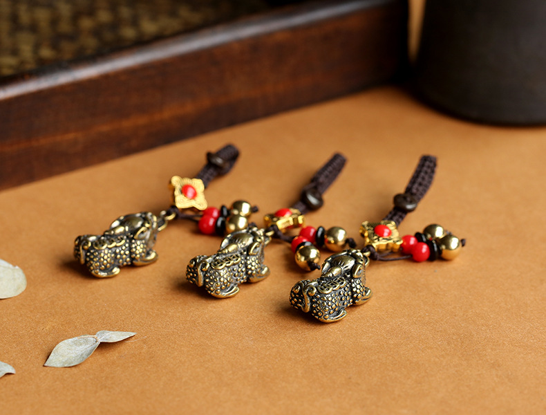 Pure brass retro PI Xiu car key chain bite money PI Xiu key pendant copper coins men's and women's gifts