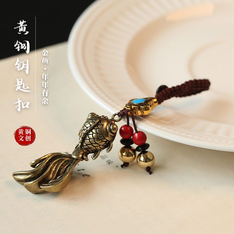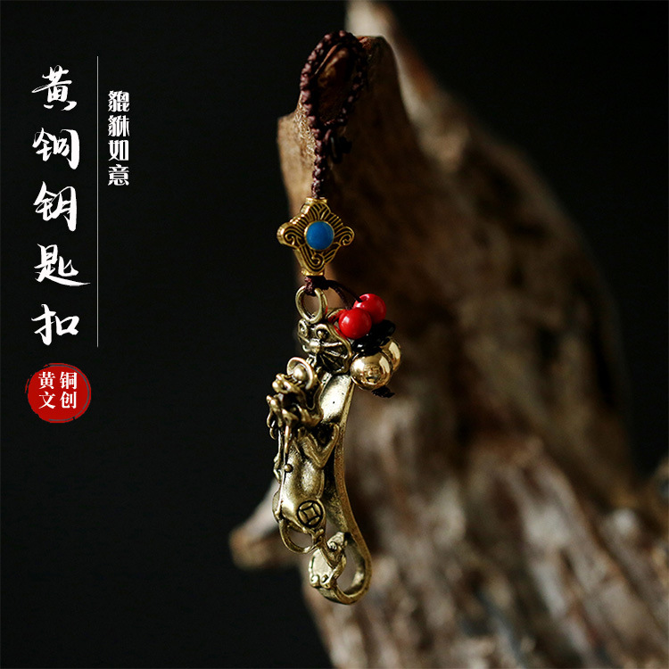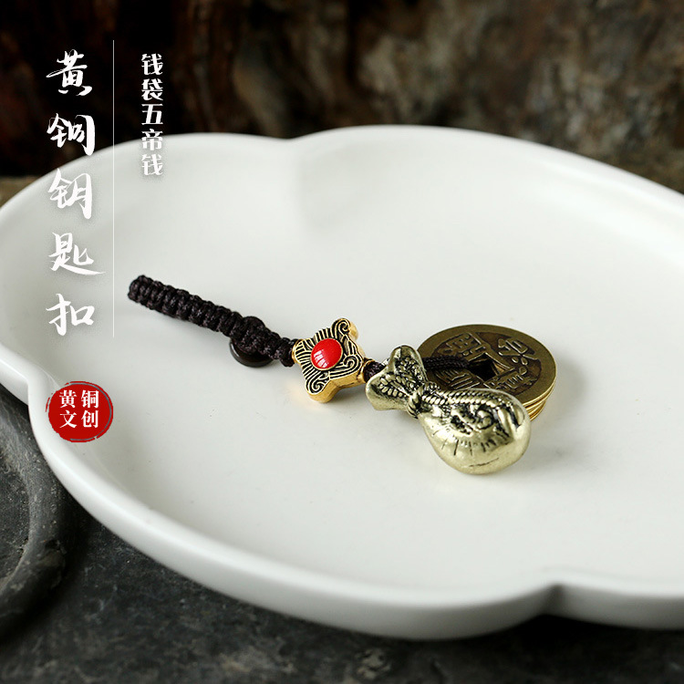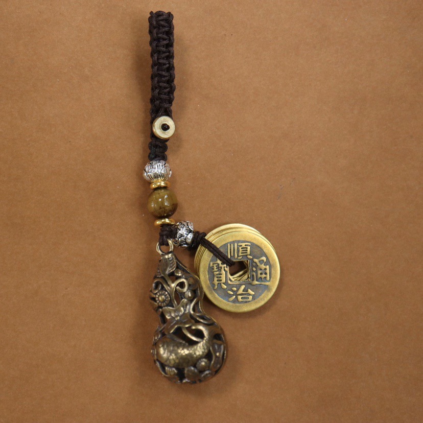 Pure copper Chinese-style gourd keychain creative small gifts are selling well. Brass keychain pendants