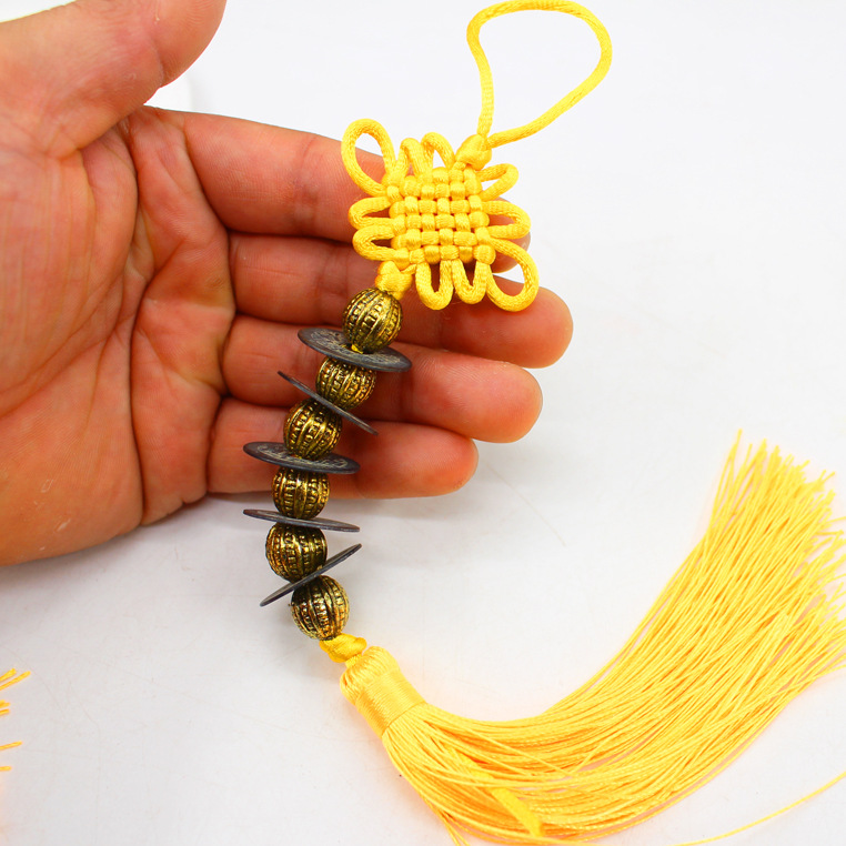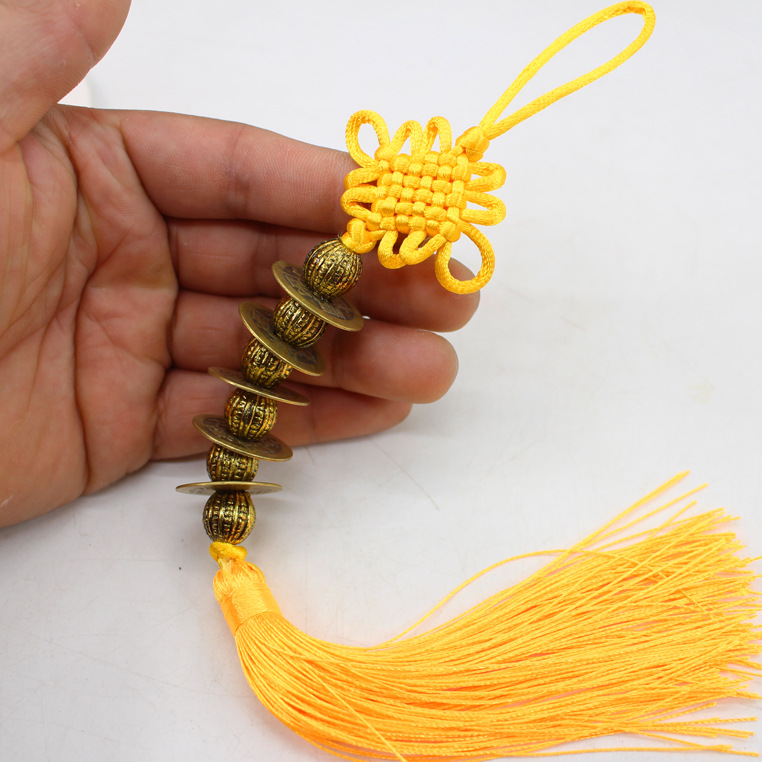 Pure copper Five Emperors' coins, red and yellow Chinese knots, Ten Emperors' copper coins, Chinese knots of wealth and honor, wooden gourd coins, car pendants