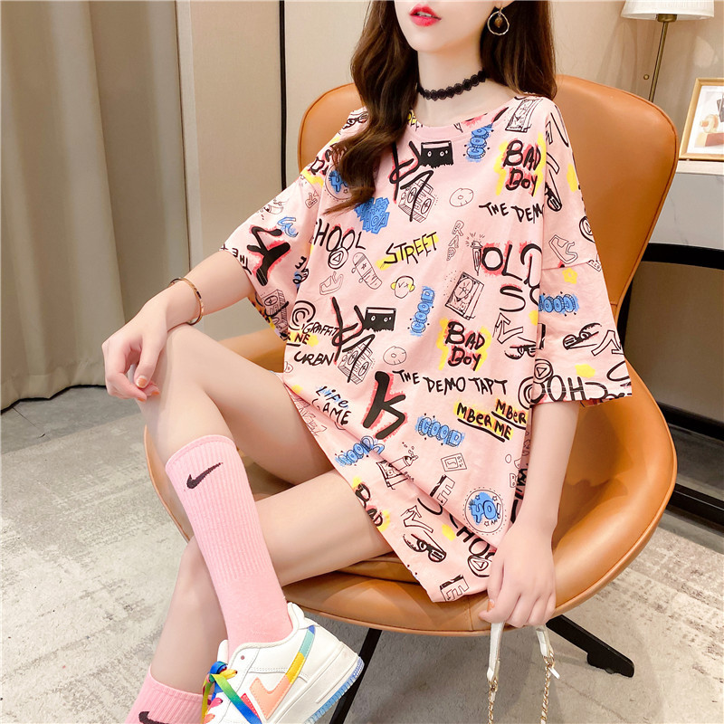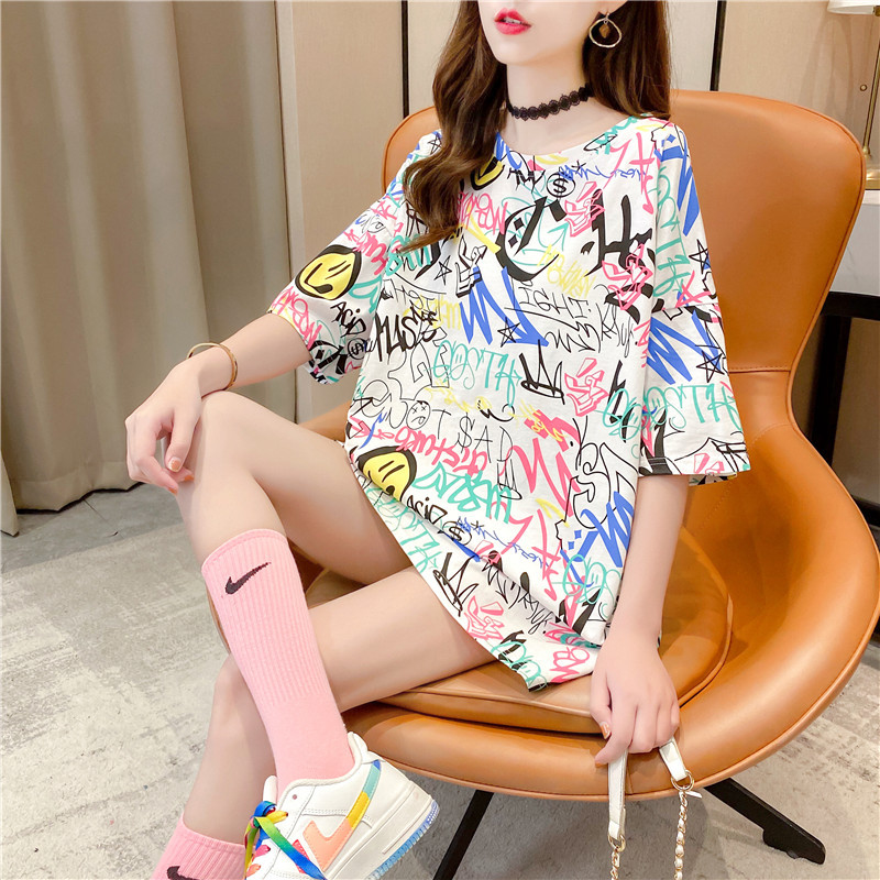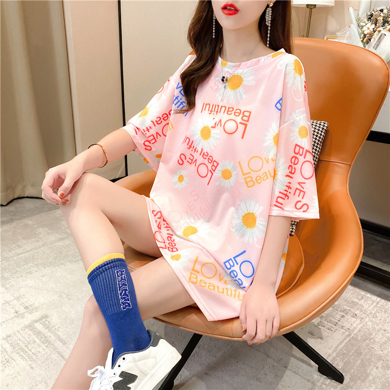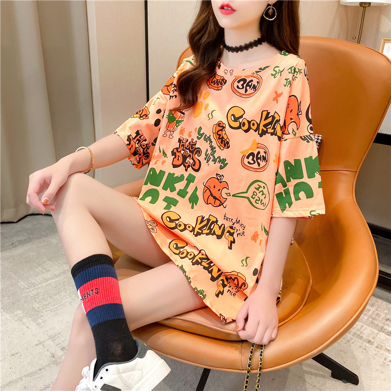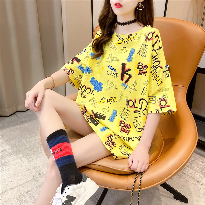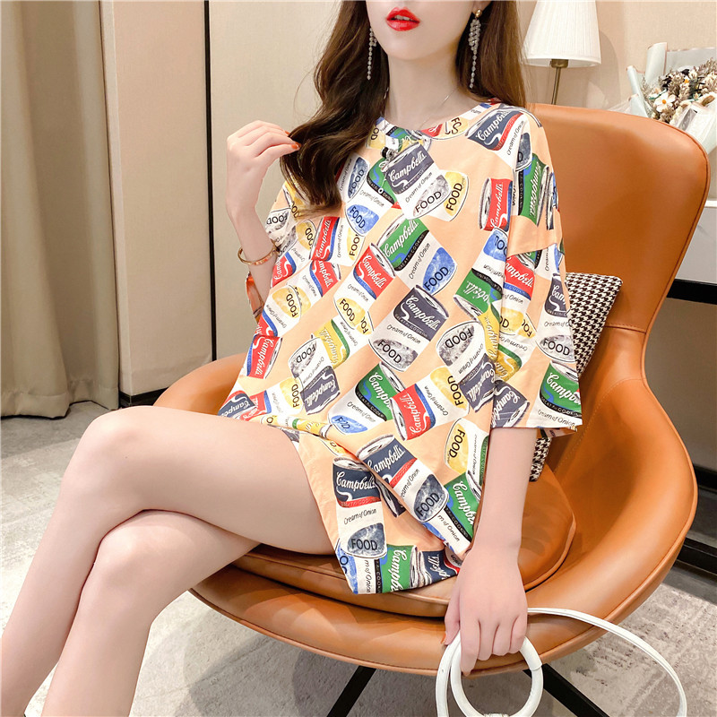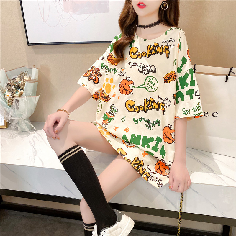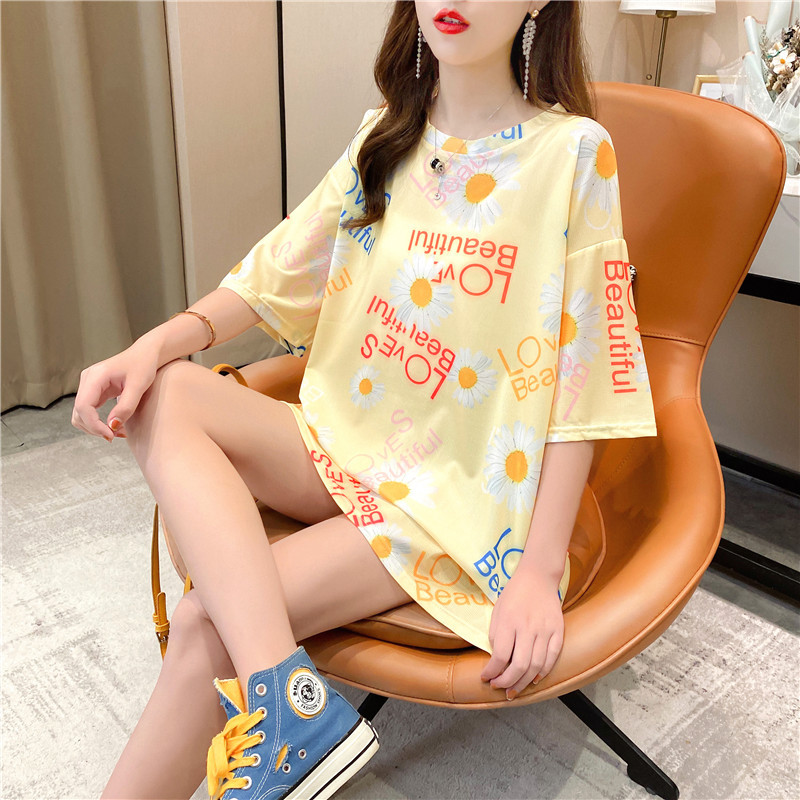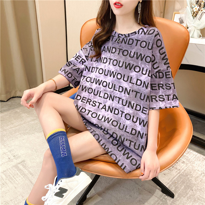 Pure cotton mid-length short-sleeved T-shirt skirt for women's summer wear, a super popular online celebrity. Loose European station top for women's T-shirt for women