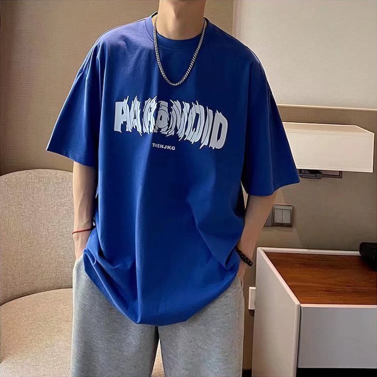 Pure cotton short-sleeved T-shirt for men, loose Hong Kong trend brand round-neck top, new letter-printed half-sleeved T-shirt