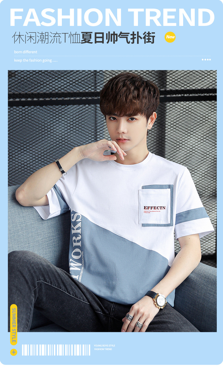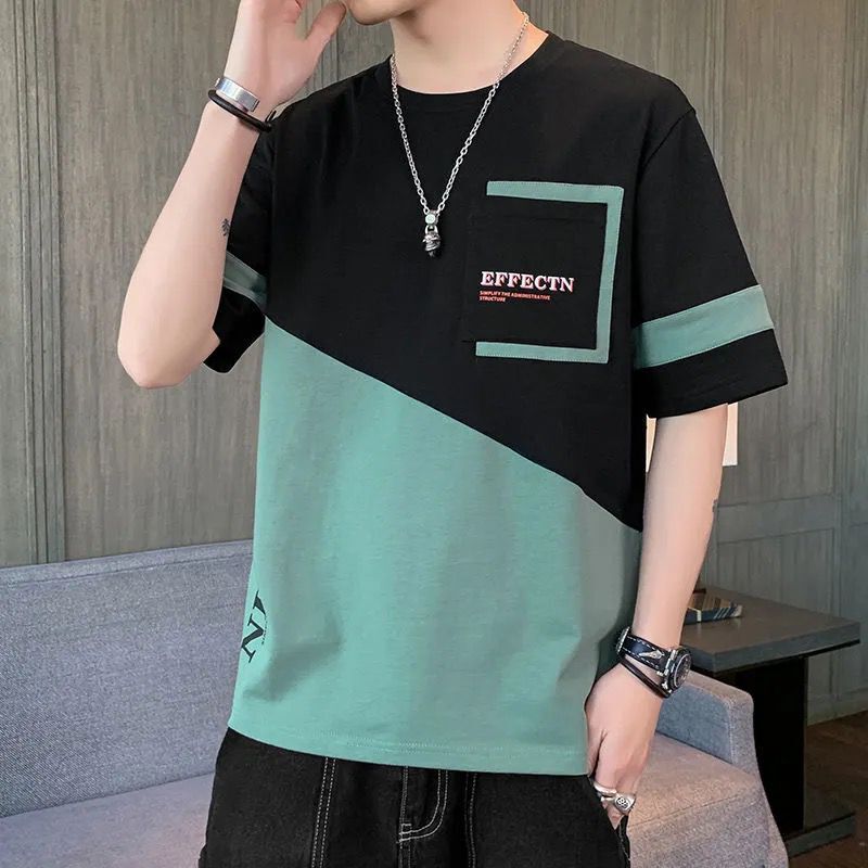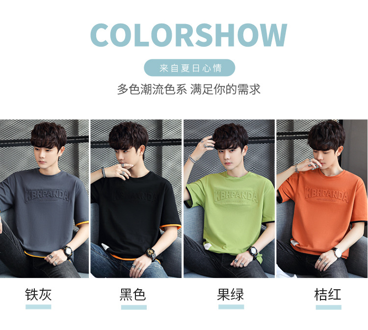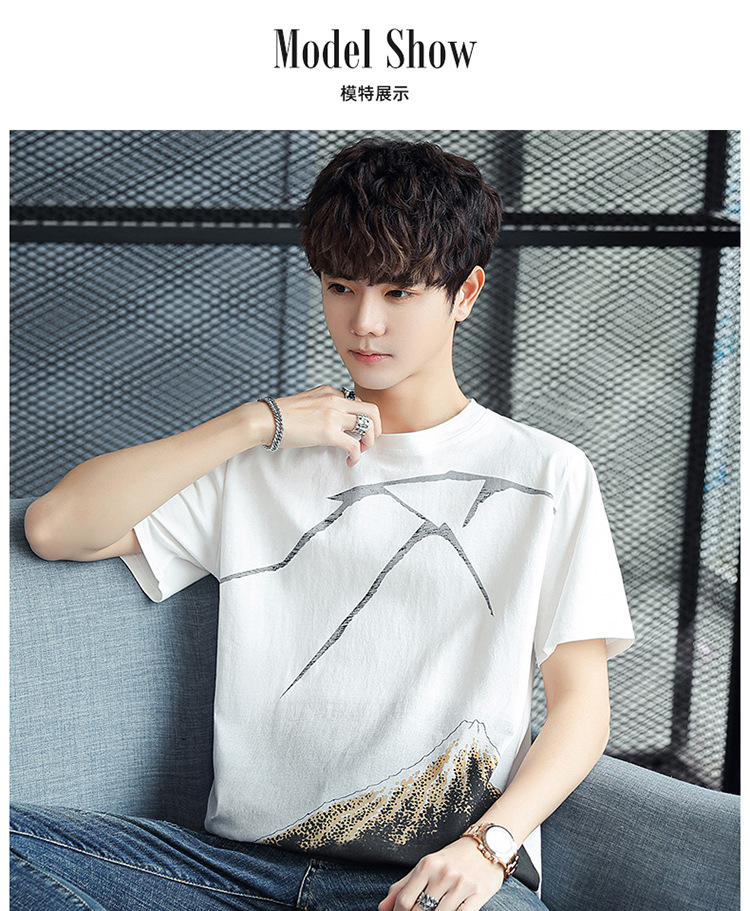 Pure cotton short-sleeved T-shirt for men's summer new trend, ins ice porcelain cotton half-sleeved T-shirt, round-neck trendy brand clothes