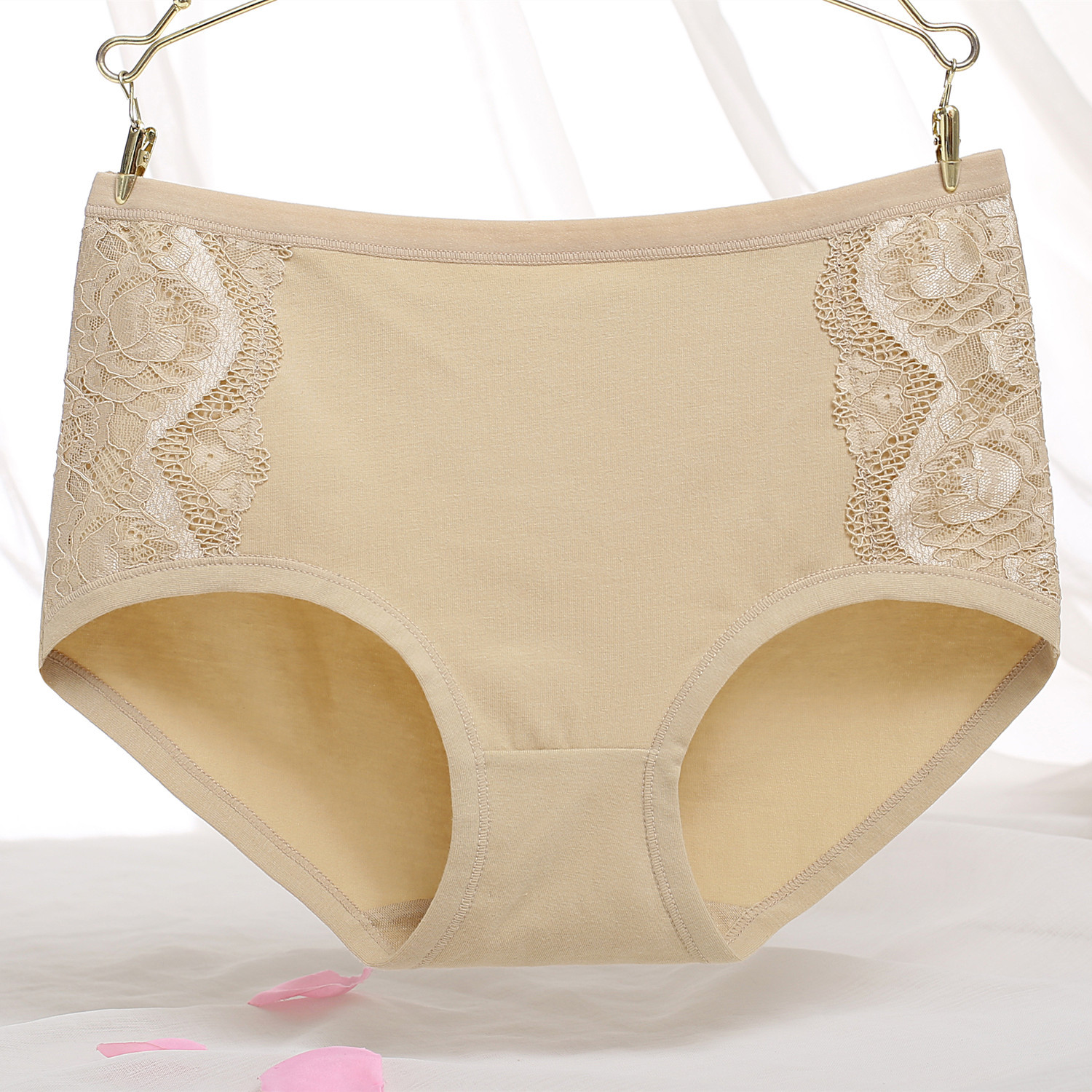 Pure cotton underwear for women, mid-high waist with a small potbelly, women's triangle pants, lace jacquard women's underwear manufacturer wholesale