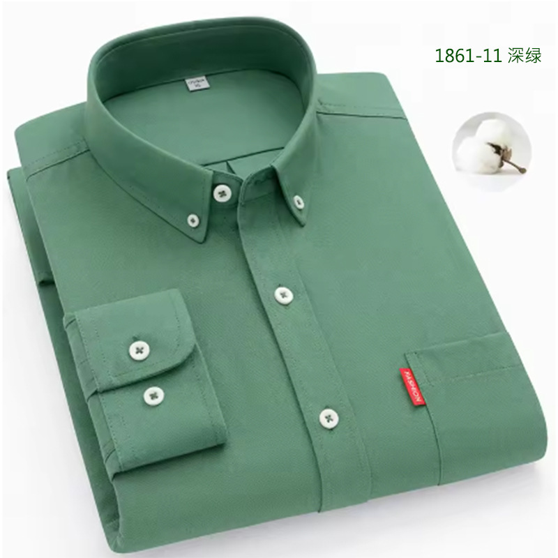 Pure cotton washed Oxford fabric shirt, long-sleeved casual one-inch shirt for young men, solid-color fitted lapel pocket men's shirt
