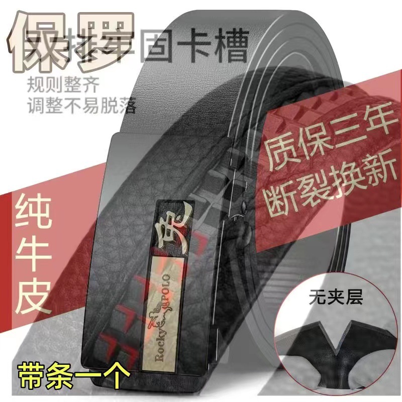 Pure cowhide Paul genuine leather 12-zodiac belt for middle-aged and young men, fashionable and simple, automatic buckle belt