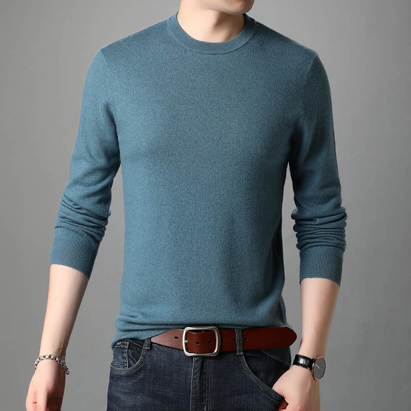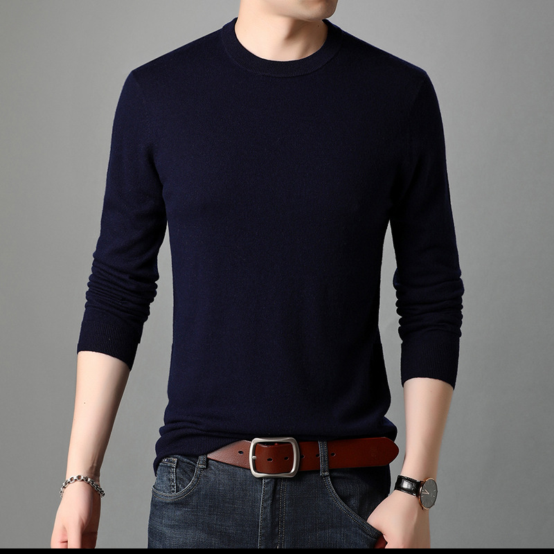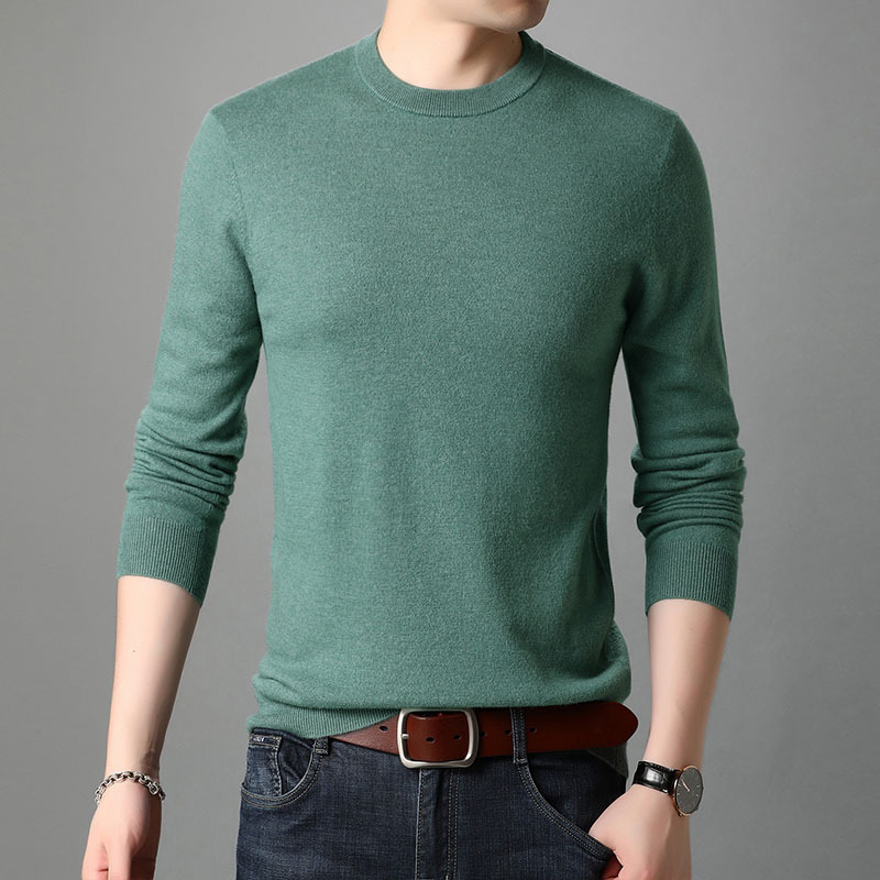 Pure wool men's woolen sweater for autumn, new men's round neck solid color, trendy and fashionable casual knitted 3F61112