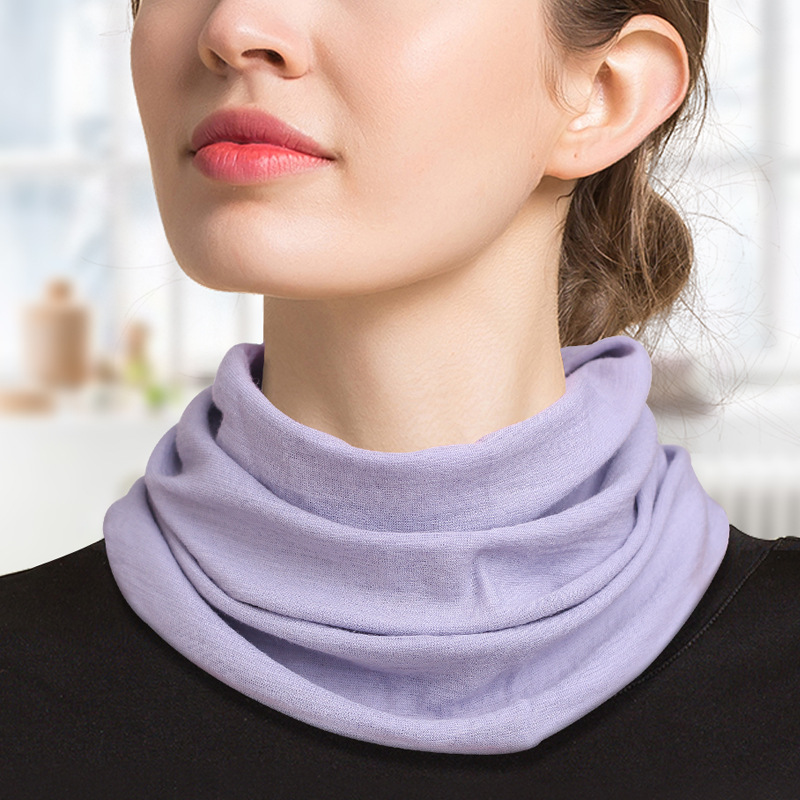 Pure wool warm pullover neck scarf for women in solid color, double-layer, versatile for autumn and winter, knitted neck guard scarf, small scarf