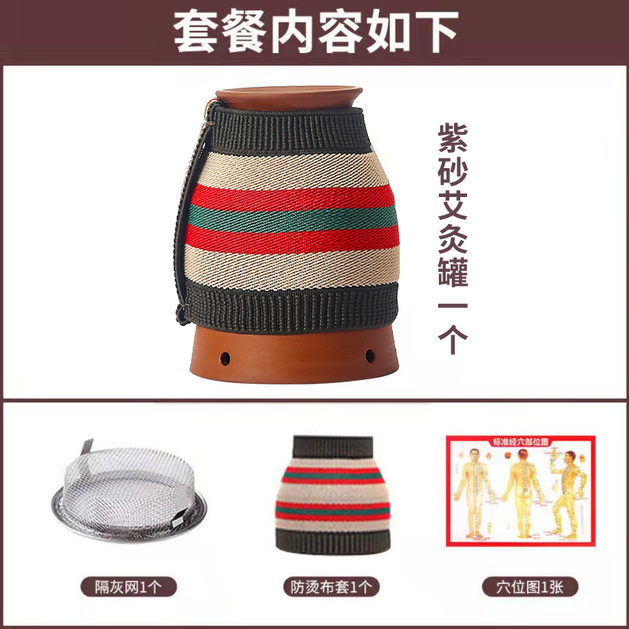 Purple clay moxibustion cups, double-layer heat-insulating ceramic hand-held gua sha cups, multi-functional portable moxibustion wholesale, Mugwort pillar moxibustion cups