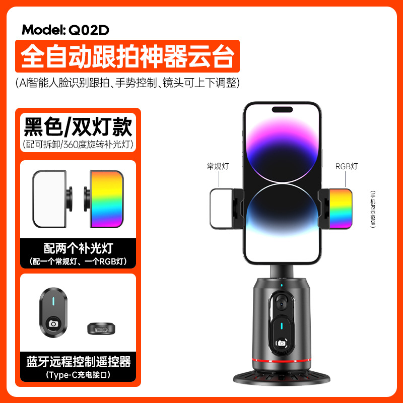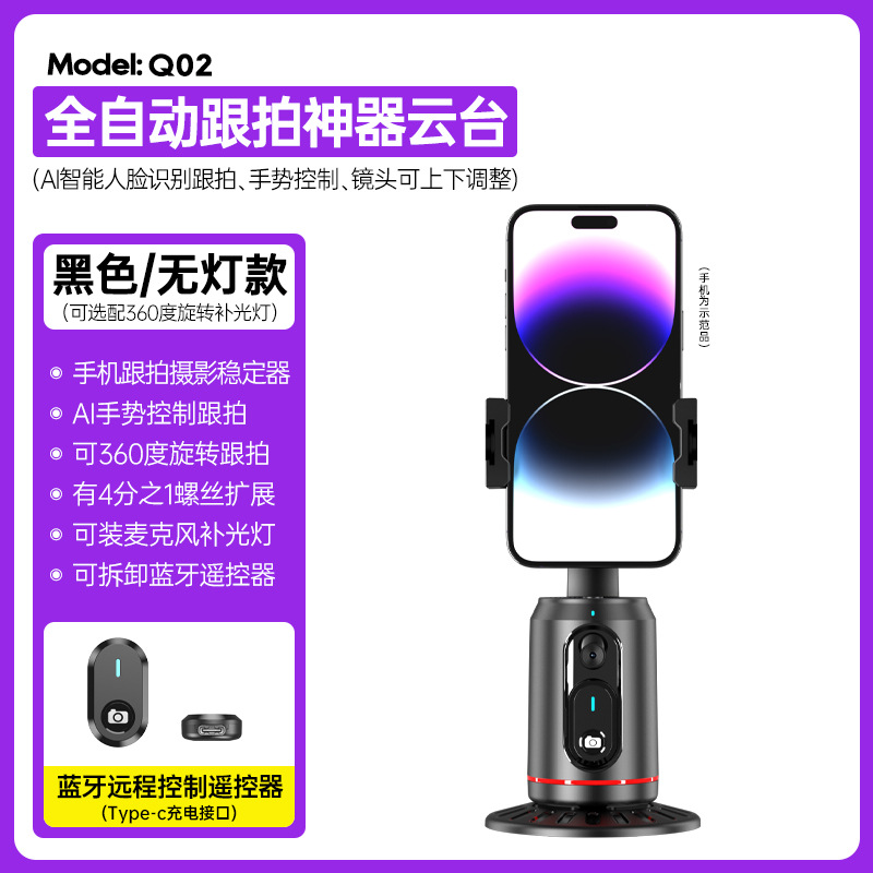 Q02 Pan-tilt fully automatic tracking Camera with remote control, mobile live streaming stand stabilizer, AI intelligent face recognition mobile pan-tilt