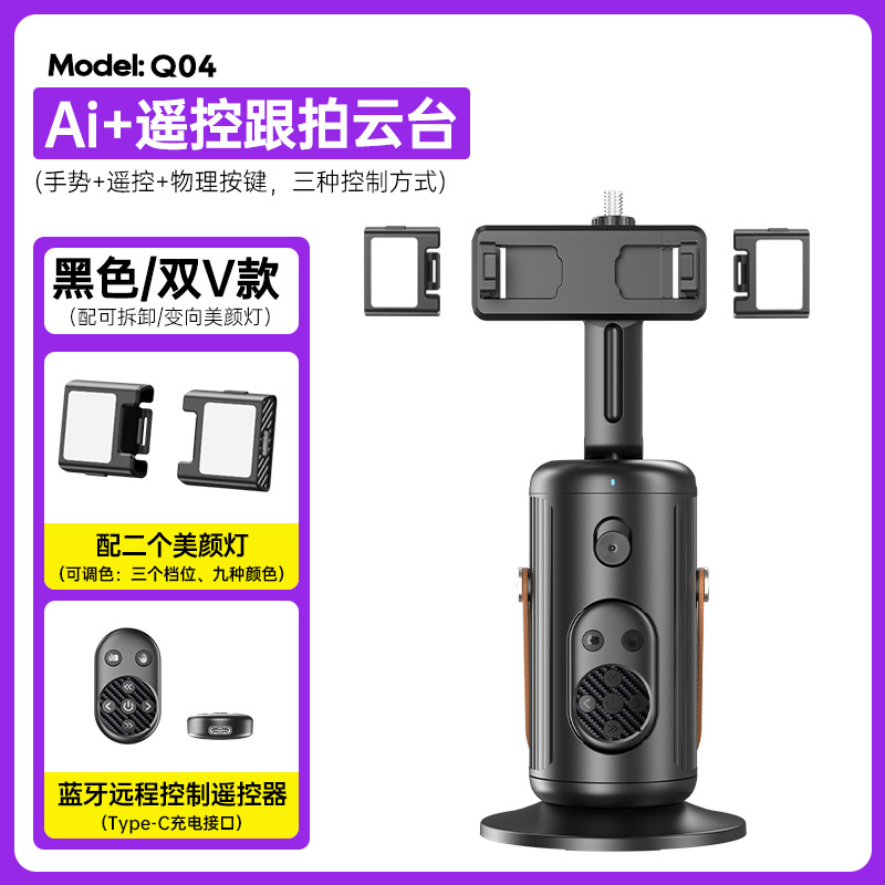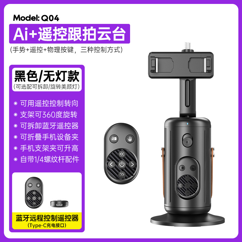 Q4 Pan-tilt fully automatic tracking Camera with remote control, mobile live streaming stand stabilizer, AI intelligent face recognition mobile pan-tilt