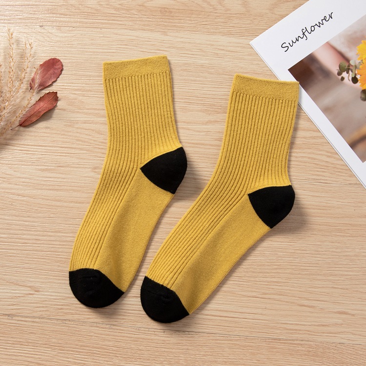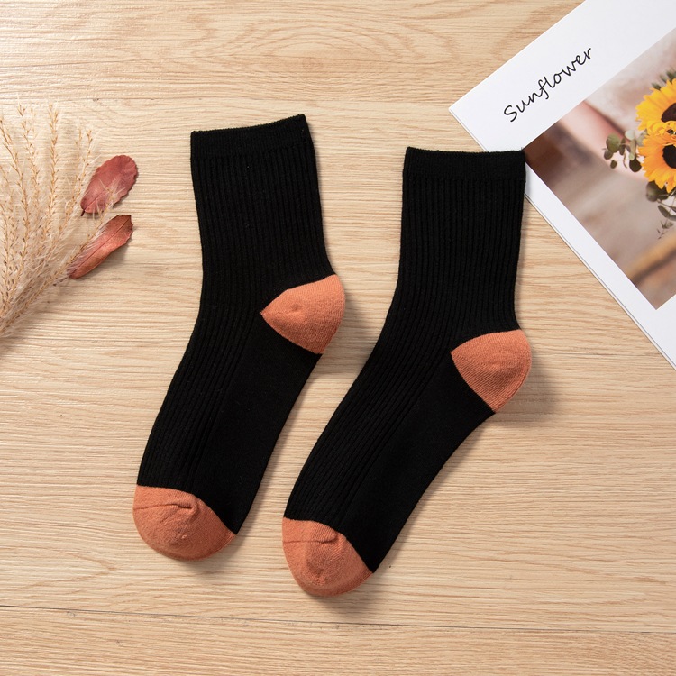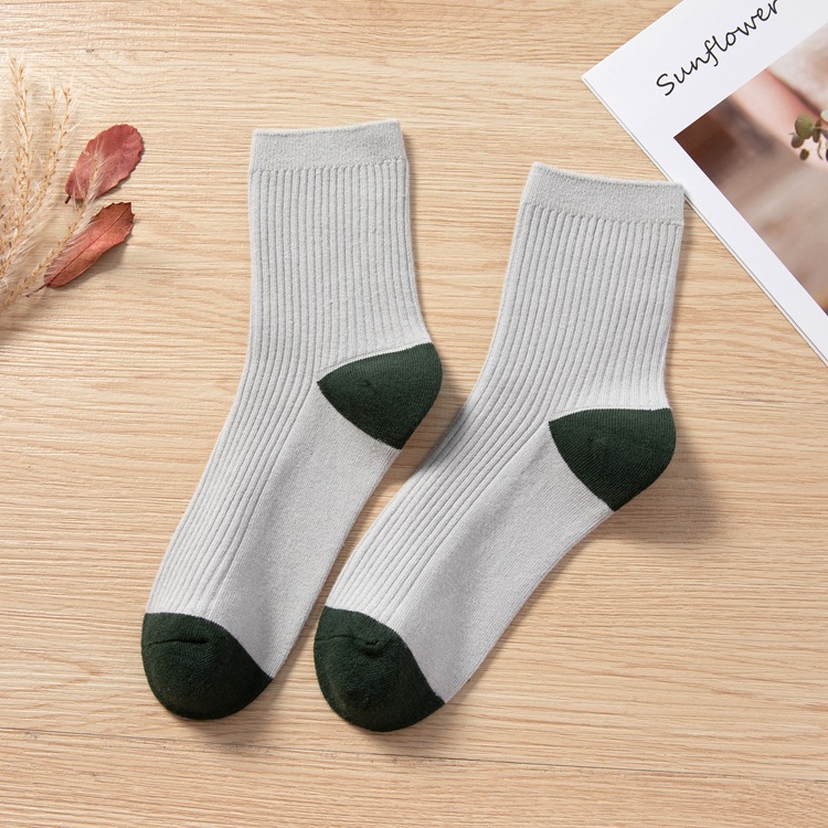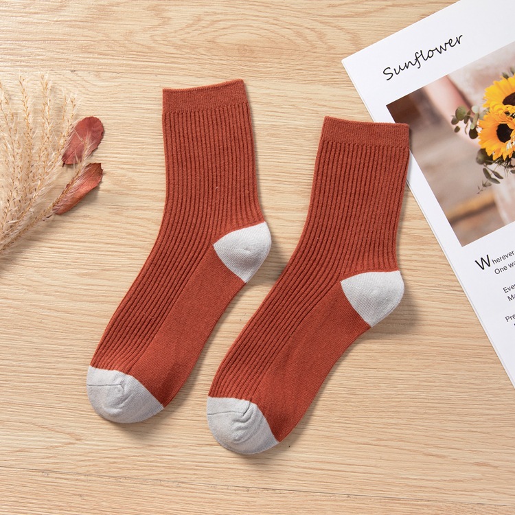 Qingna Socks Women's Autumn and Winter double-needle women's Socks Fashion School style color-blocked women's socks combed cotton long stockings wholesale