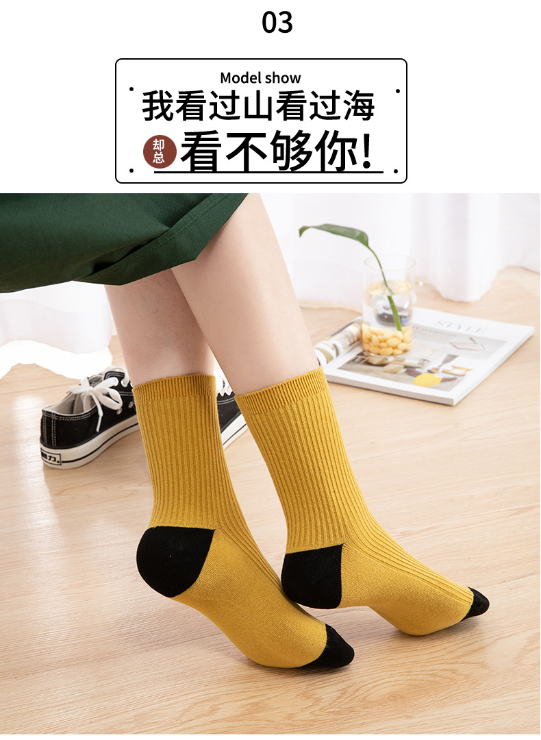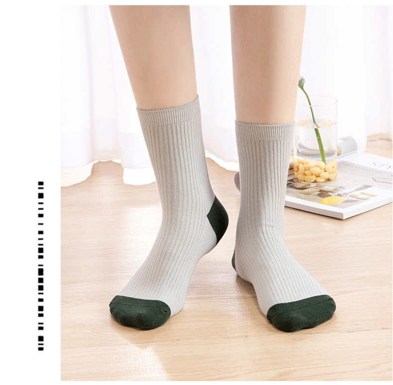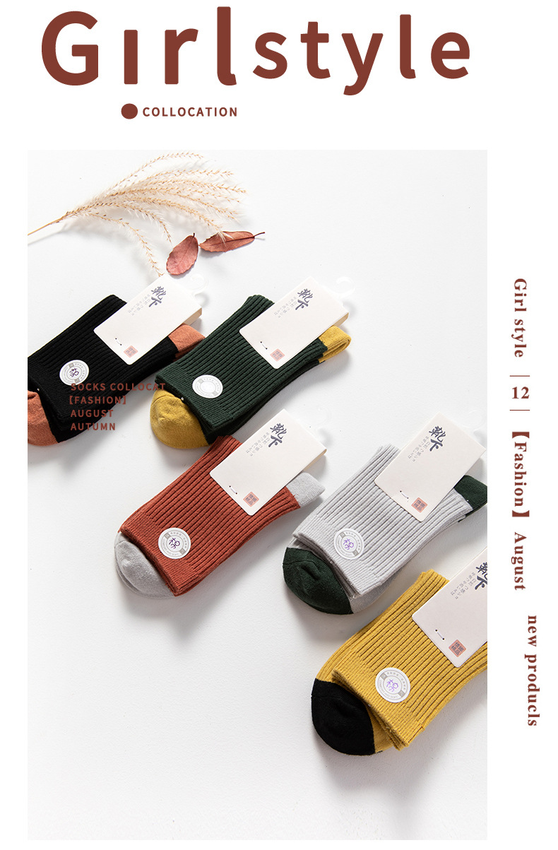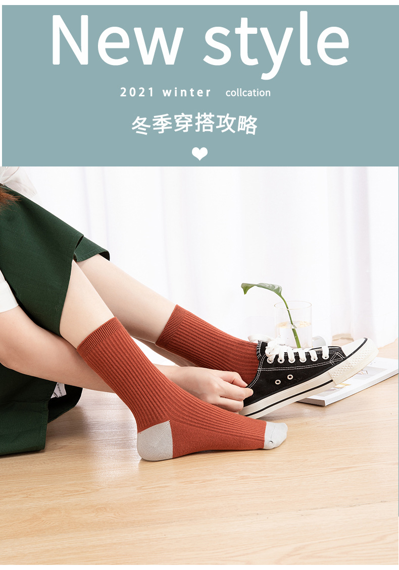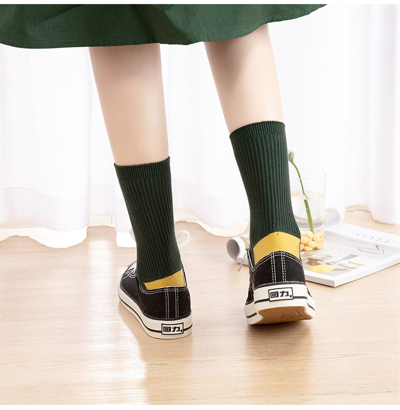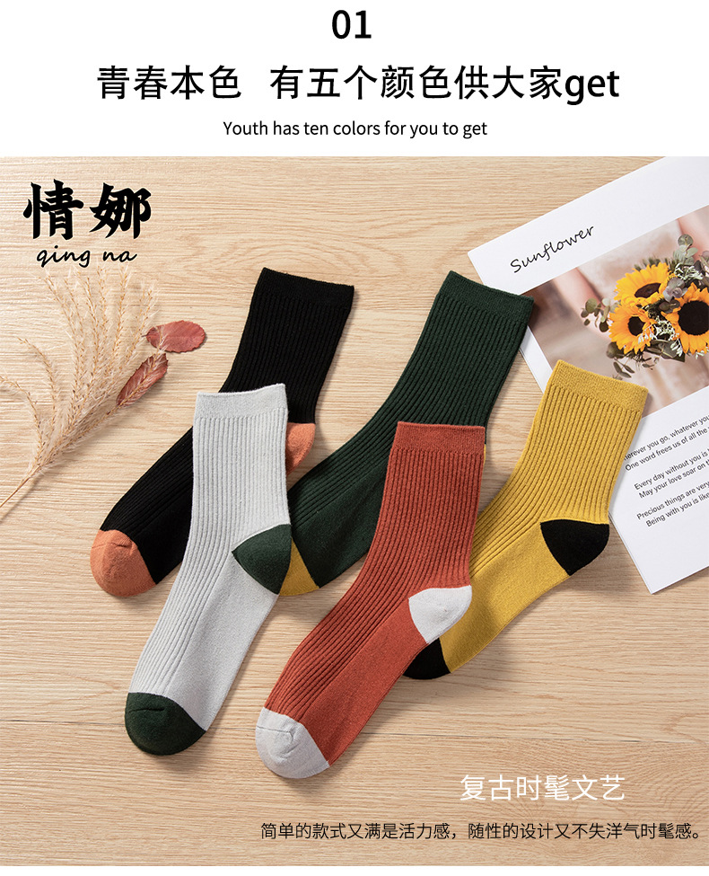 Qingna Socks Women's Autumn and Winter double-needle women's Socks Fashion School style color-blocked women's socks combed cotton long stockings wholesale