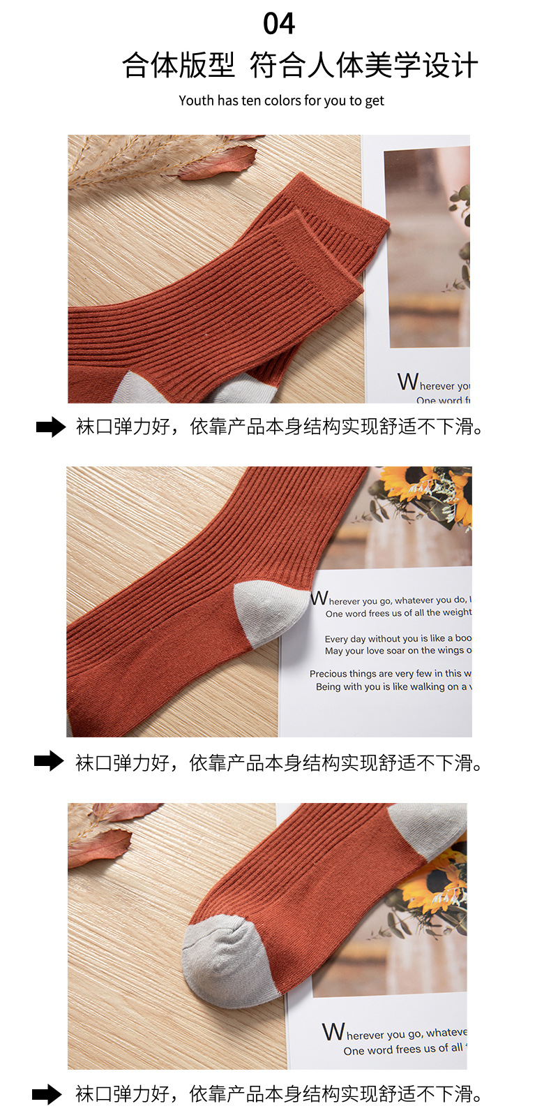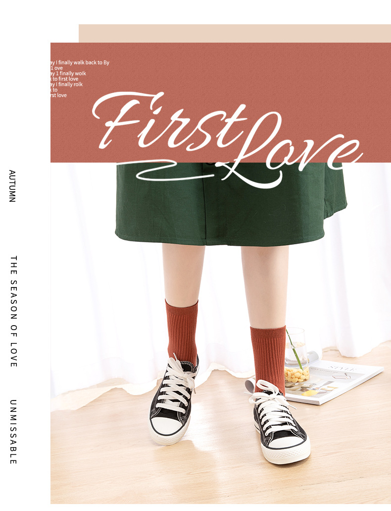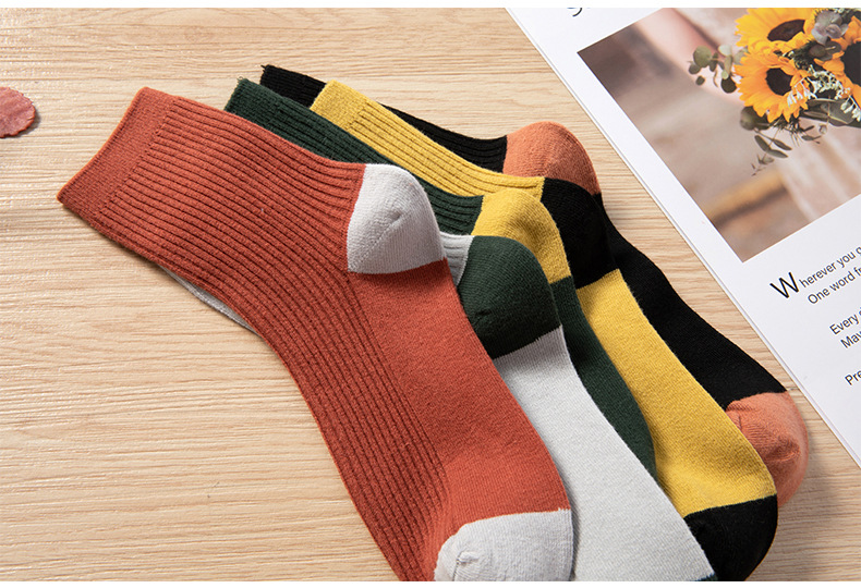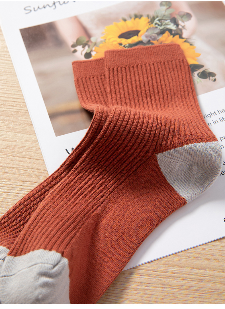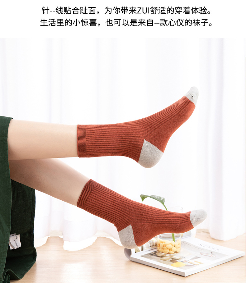 Qingna Socks Women's Autumn and Winter double-needle women's Socks Fashion School style color-blocked women's socks combed cotton long stockings wholesale
